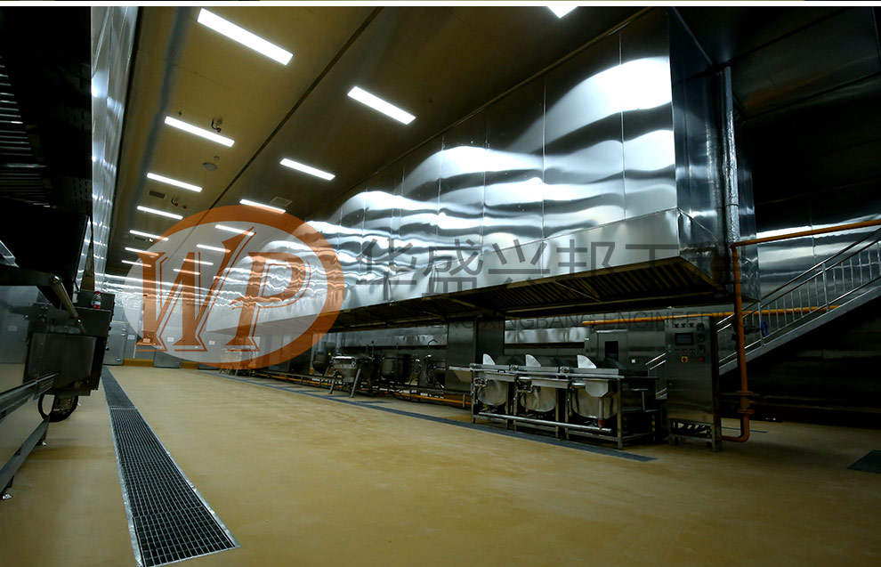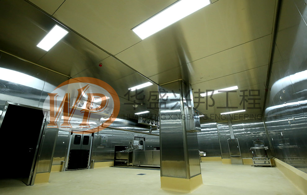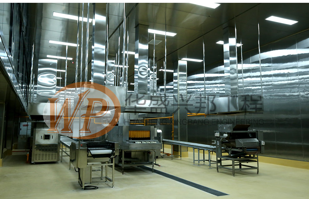 項(xiàng)目介紹:該中央廚房生產(chǎn)車間是雙面不銹鋼中控玻鎂板,地面為聚氨酯砂漿地坪