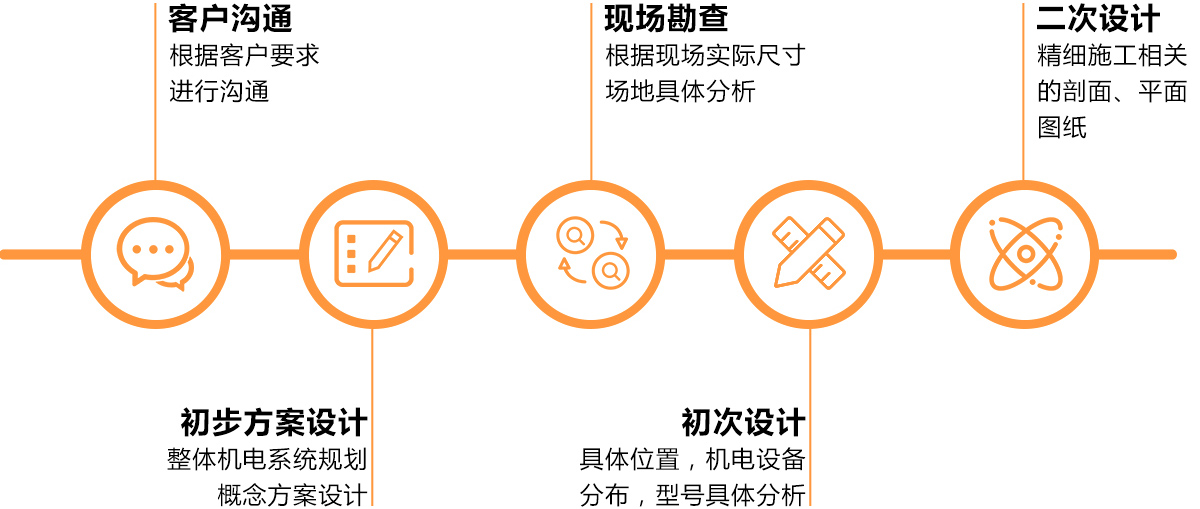 初次設(shè)計(jì)包括:機(jī)電方案設(shè)計(jì)、機(jī)電初步設(shè)計(jì)、機(jī)電施工圖設(shè)計(jì)、施工調(diào)試服務(wù)