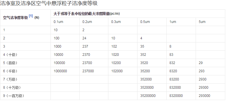 100000級(十萬級):用于很多的工業(yè)部門,比如光學(xué)產(chǎn)品的制造,用于較小的元器件制造大型的電子系統(tǒng),液壓或氣壓系統(tǒng)的制造,食品飲料的生產(chǎn),固體液體飲片等藥品生產(chǎn)。
