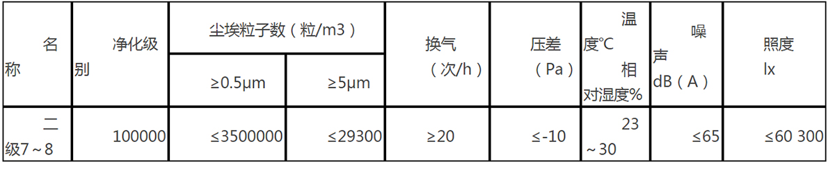 潔凈度10000級(jí)cleanliness class 10000(P2萬(wàn)級(jí)實(shí)驗(yàn)室即ISO7級(jí))即大于等于0.5μm的塵粒數(shù)大于35000粒/m3(35粒/L)到小于等于350000粒/m3(350粒/L);大于等于5μm的塵粒數(shù)大于300粒/m3(0.3粒/L)到小于等于3000粒/m3(3粒/L)。