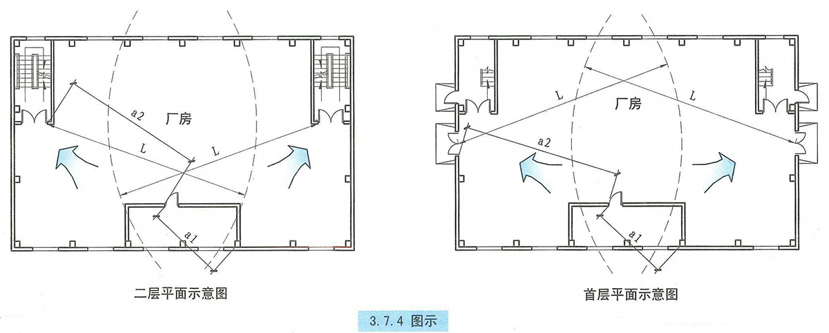 1.L為廠房內(nèi)任一點至最近安全出口的直線距離;