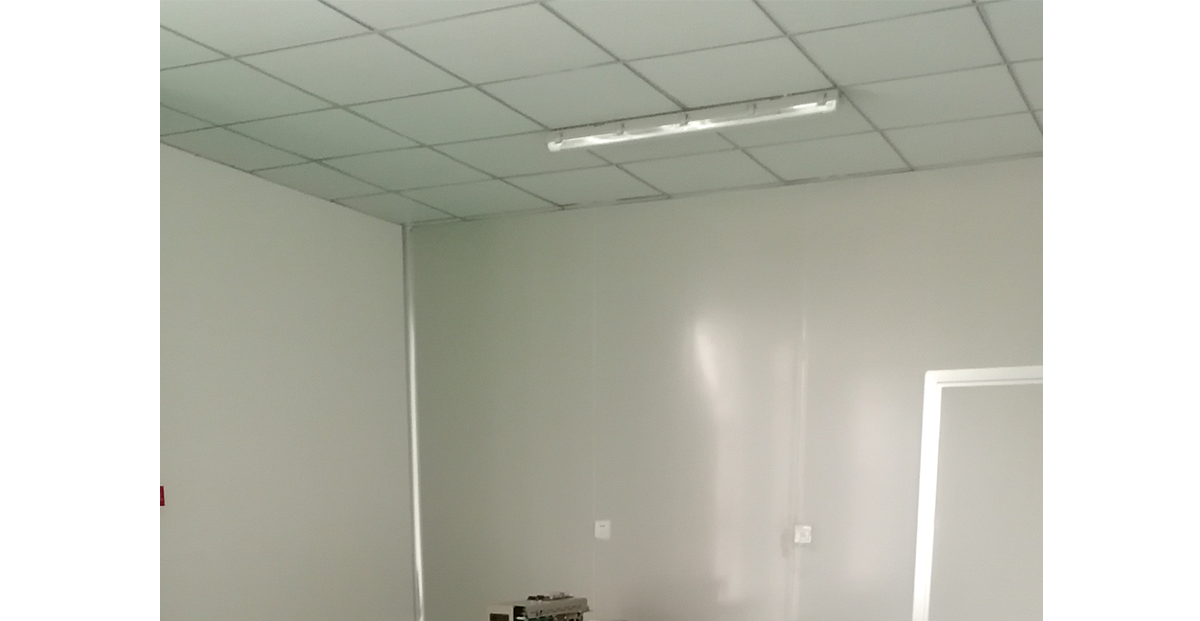 潔凈室的頂棚要求密封無縫、整潔、無脫落物產(chǎn)生,可承受室內(nèi)壓力。根據(jù)工藝和整體廠房設(shè)計(jì)需要,在潔凈室的頂棚之上,設(shè)置技術(shù)隔層,以鋪設(shè)水、氣管路及空調(diào)管道和電力管線等。