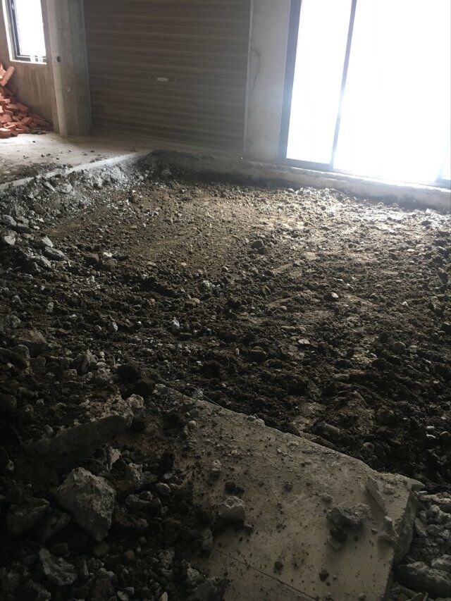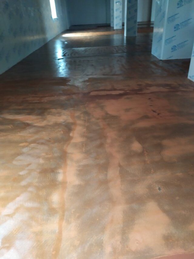 四川美料美味食品科技有限公司廠房裝修現(xiàn)場,地坪施工中