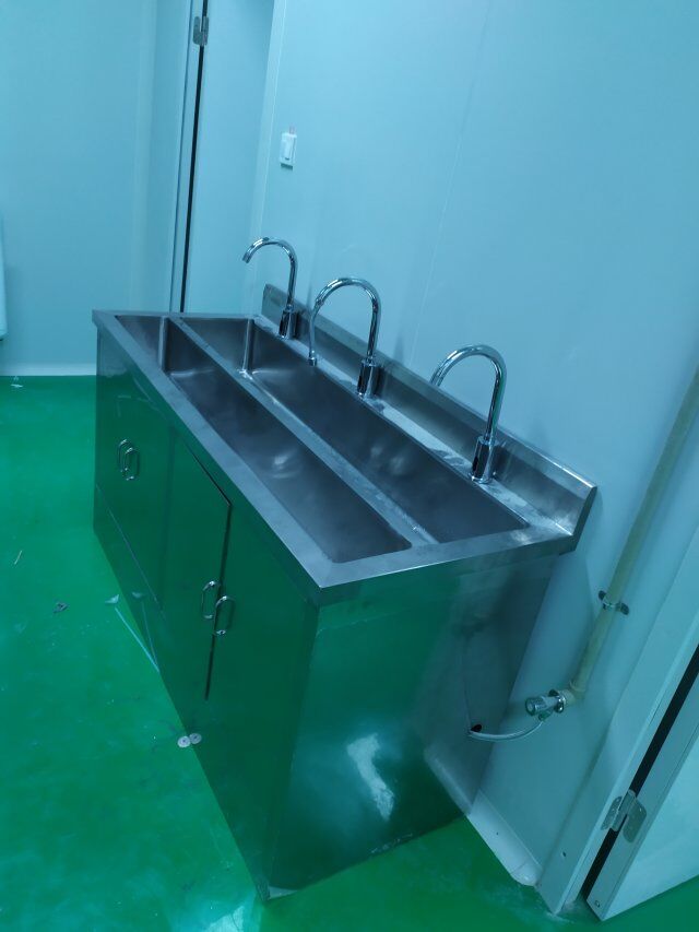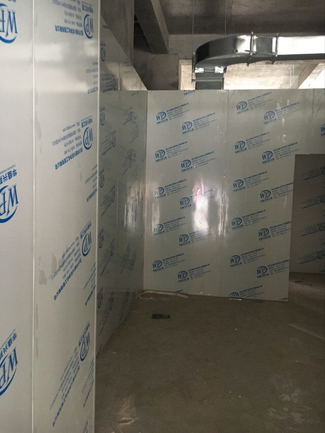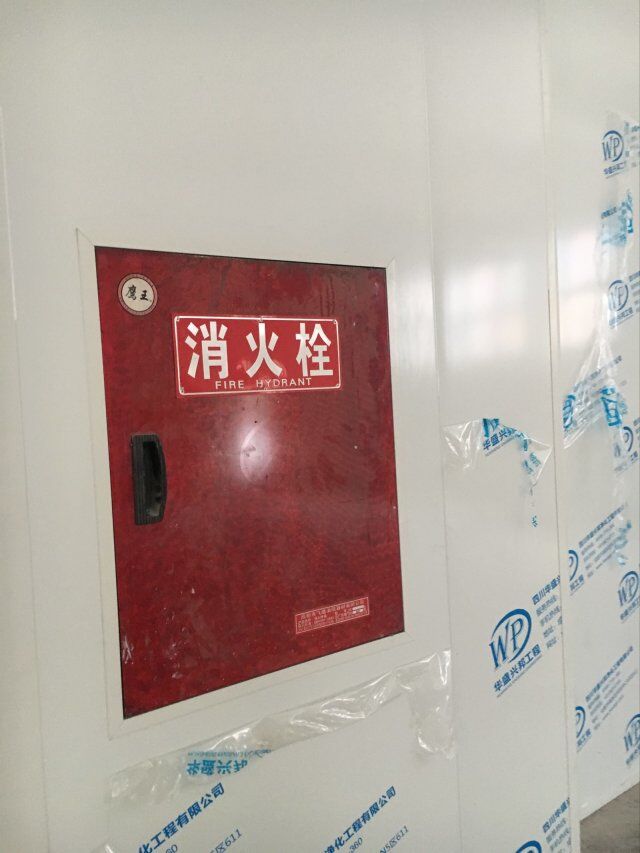 四川美料美味食品科技有限公司廠房裝修現(xiàn)場,風(fēng)淋室調(diào)試安裝完成,板材包邊完成