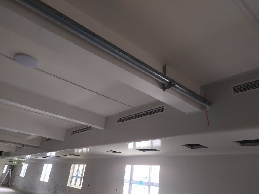 四川美料美味食品科技有限公司廠房裝修現(xiàn)場,排風(fēng)扇安裝,衛(wèi)生間裝修完成
