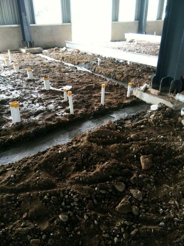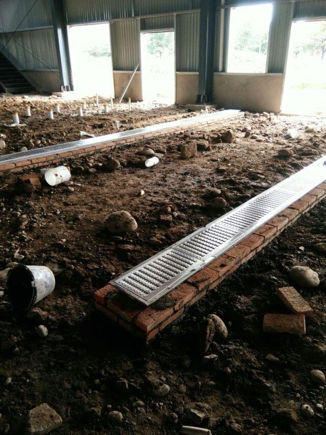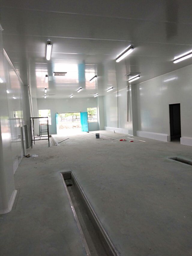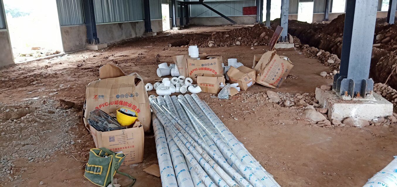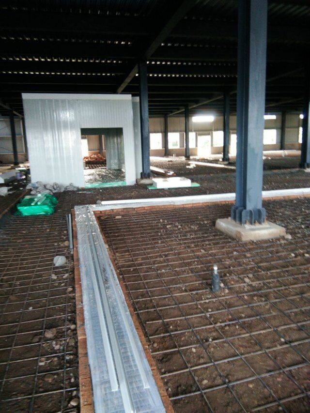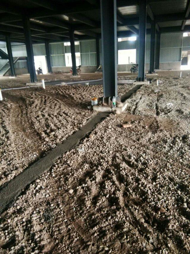 四川省江志忠食品有限公司廠房施工現(xiàn)場(chǎng),排水溝施工,地面施工,隔斷立墻板