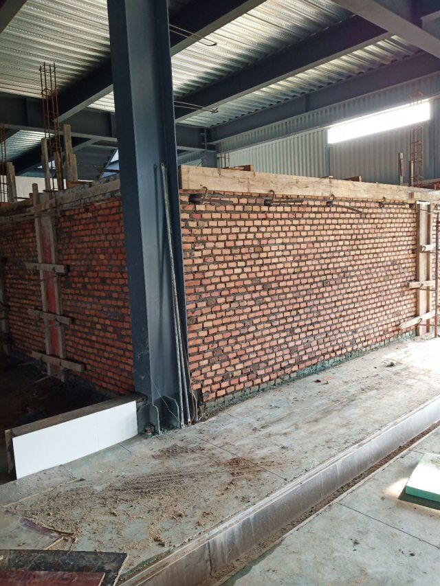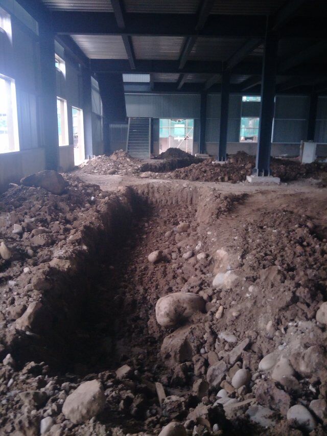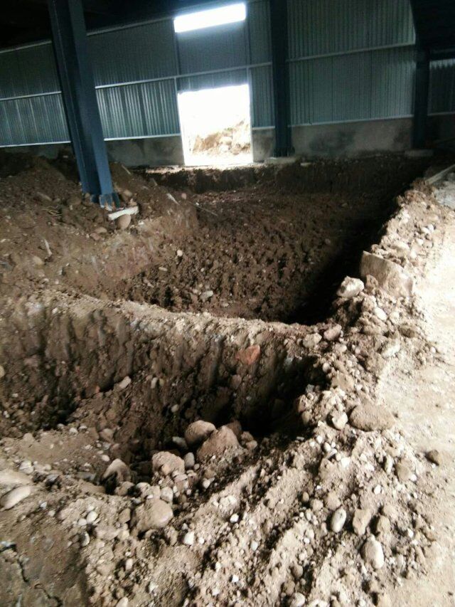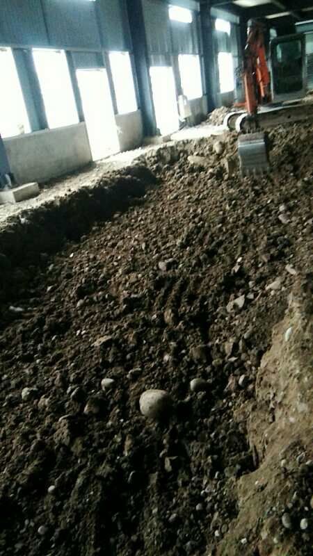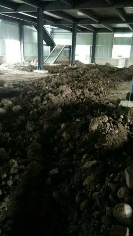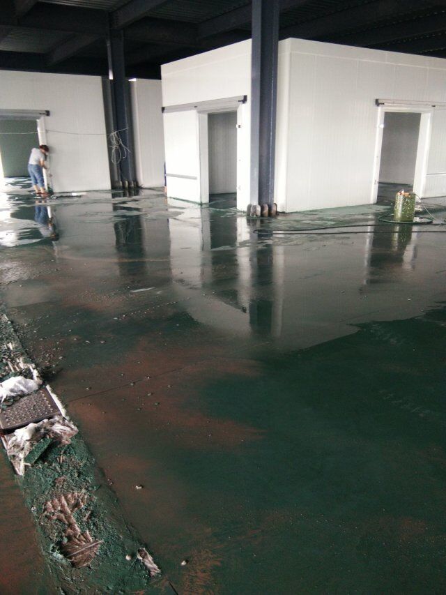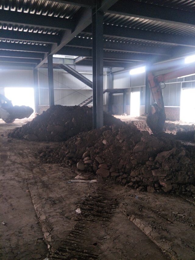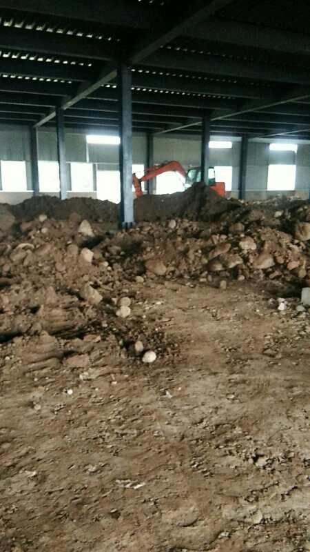 四川省江志忠食品有限公司廠房施工現(xiàn)場(chǎng),排水溝施工,地面施工,隔斷立墻板