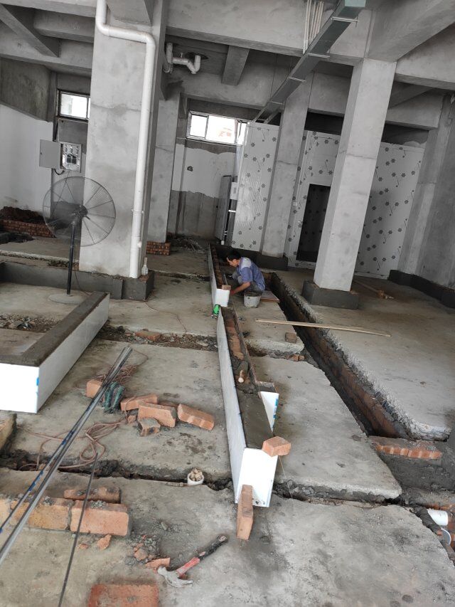四川王臻王牛肉有限公司廠房裝修現(xiàn)場(chǎng),包柱子,現(xiàn)場(chǎng)吊頂板