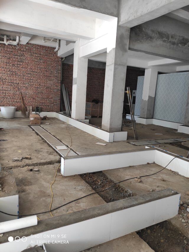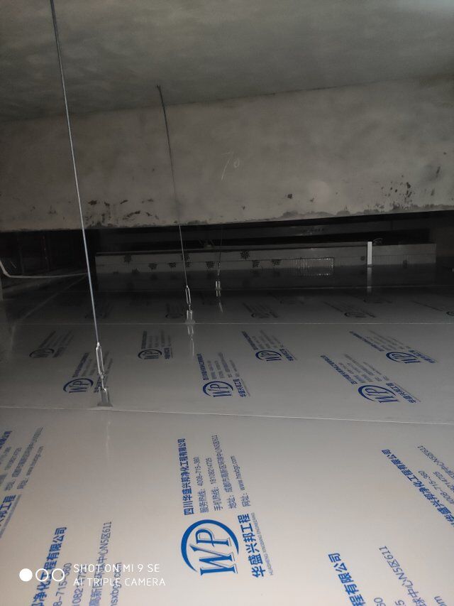 四川王臻王牛肉有限公司廠房裝修現(xiàn)場(chǎng),吊頂施工,圓弧按照