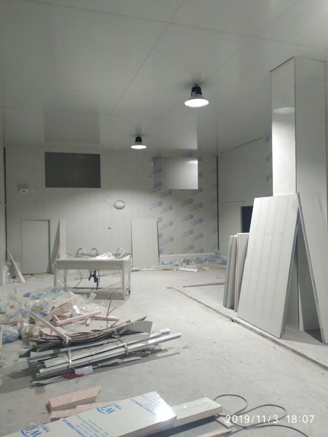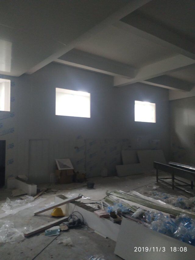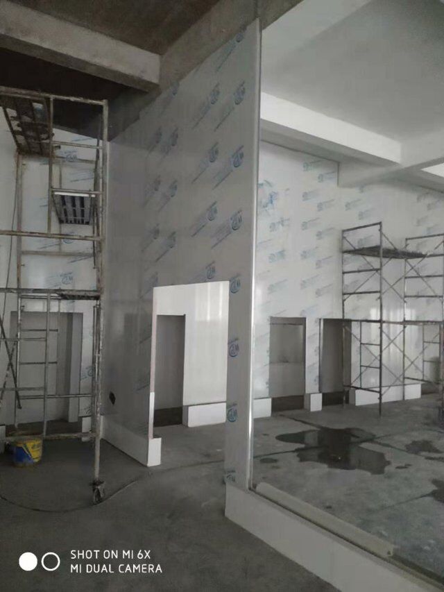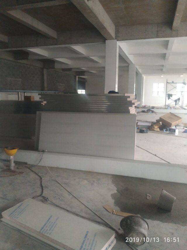 貴州紅赤水集團(tuán)有限公司廠房裝修現(xiàn)場,隔斷擋水墻施工