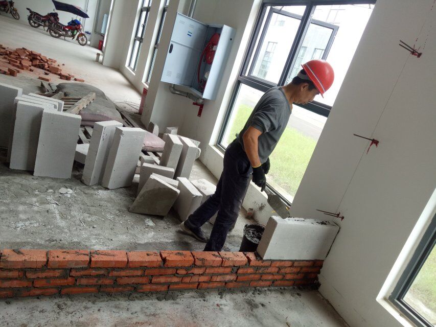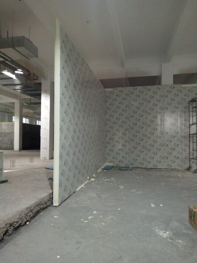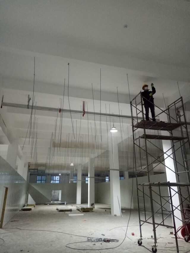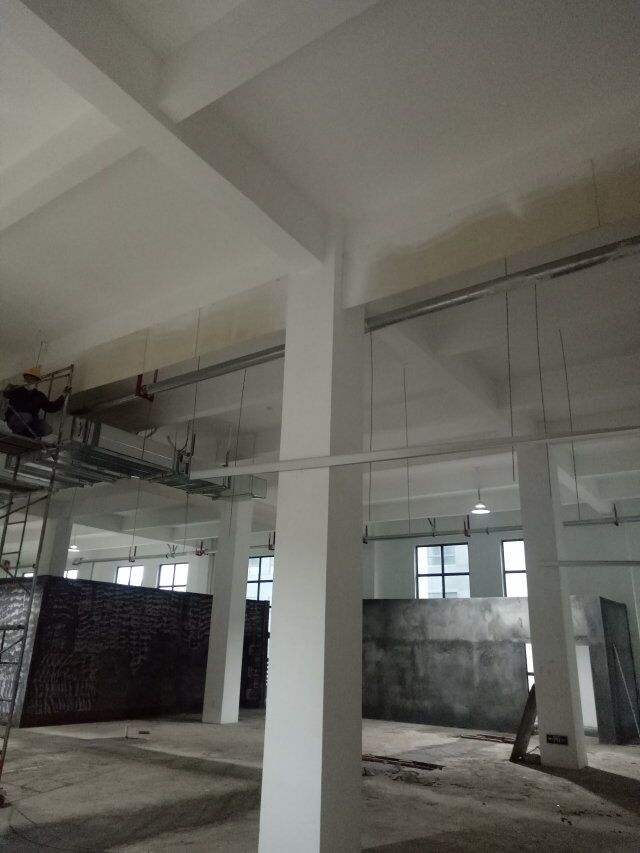 廠房施工現(xiàn)場,室內(nèi)墻板安裝完成40% 墻面抹灰完成50%