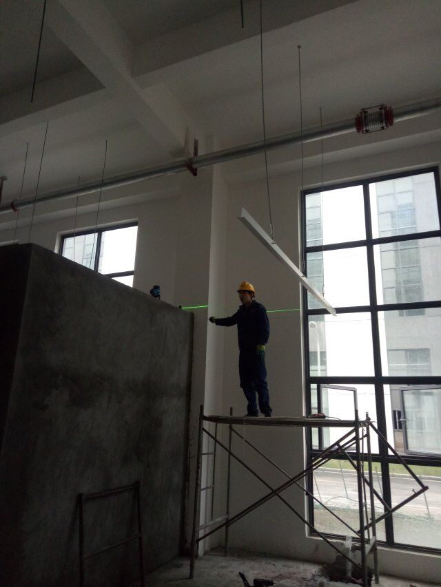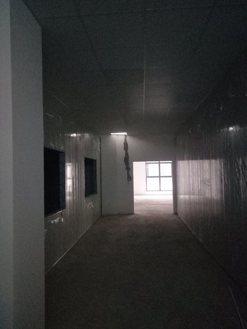 1、加工車間及風(fēng)機房聚氨酯超耐磨底漆施工完成, 2、辦公區(qū)域木地板安裝完成, 3、車間燈安裝完成, 4、門安裝完成