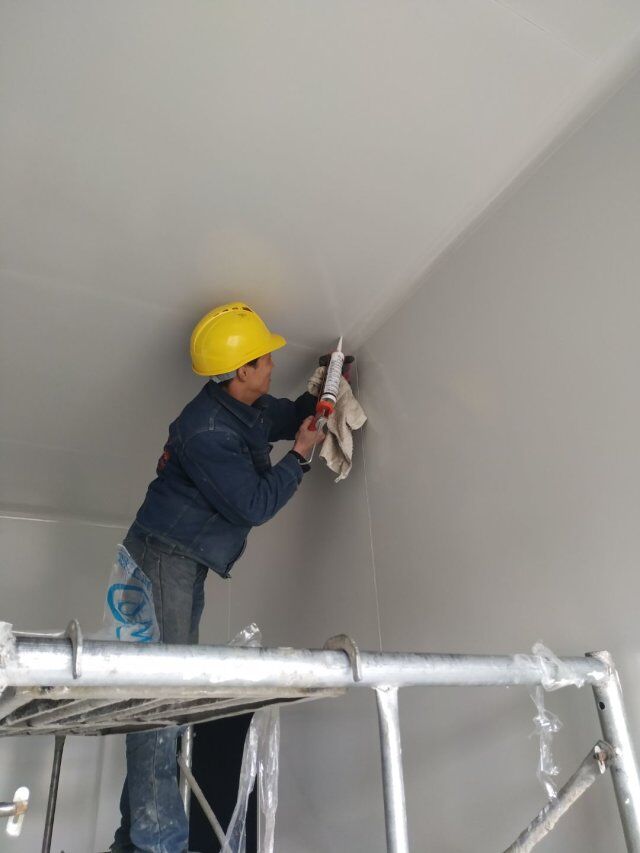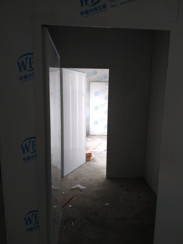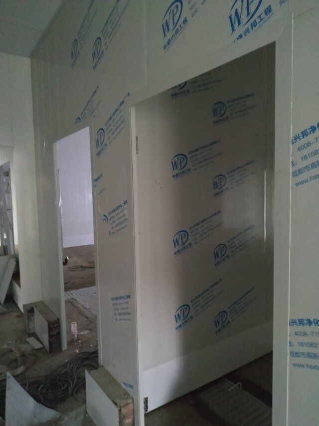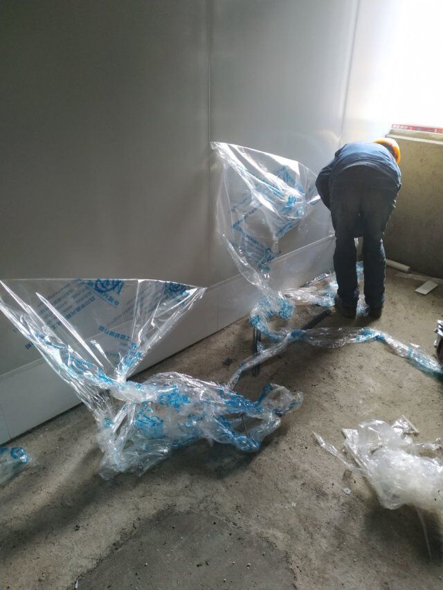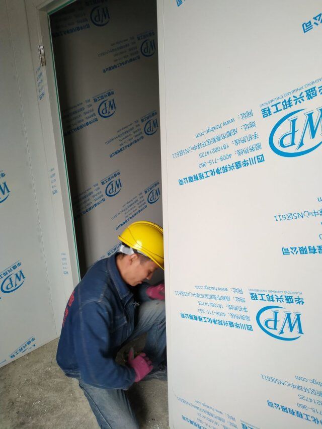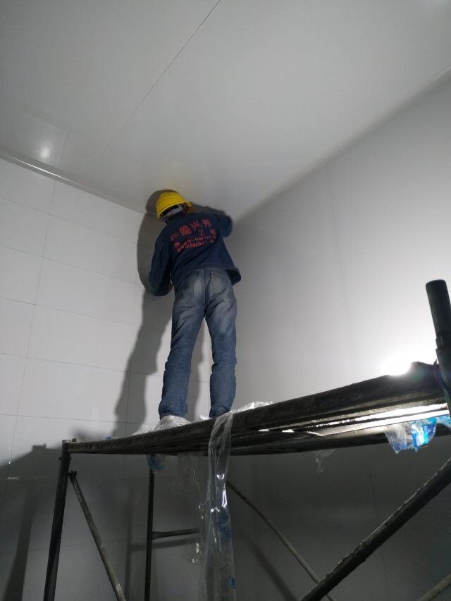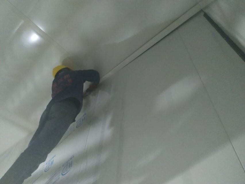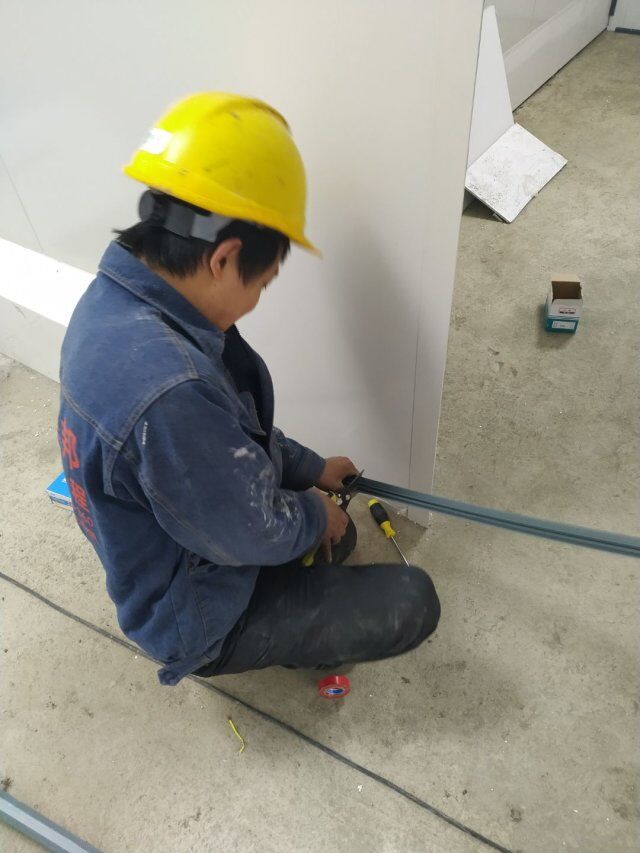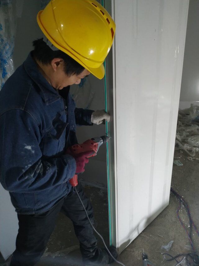 1.門鎖安裝施工,車間墻板撕膜,墻面打膠施工。