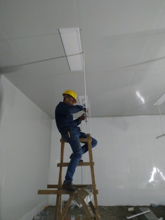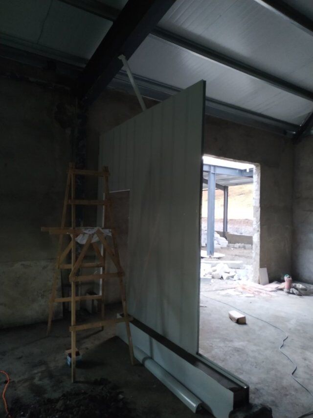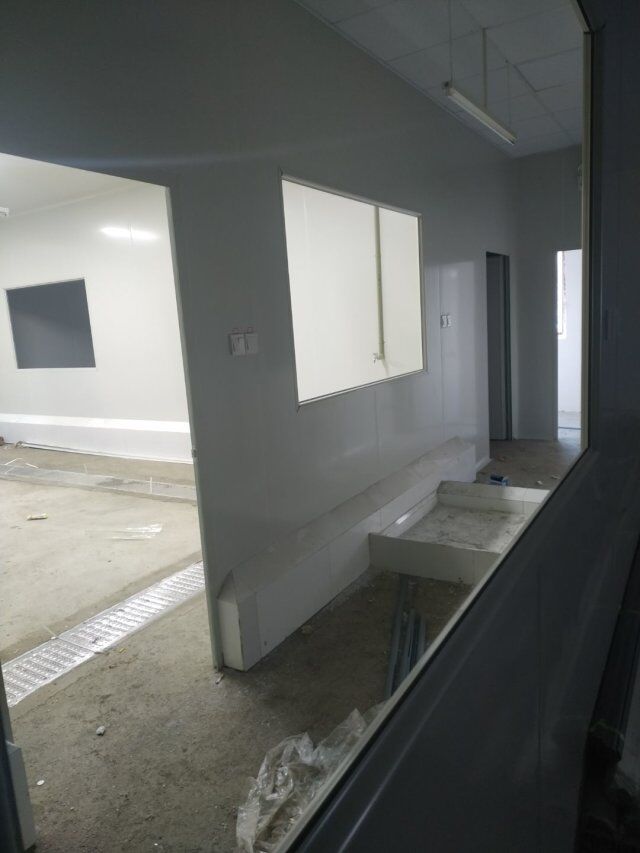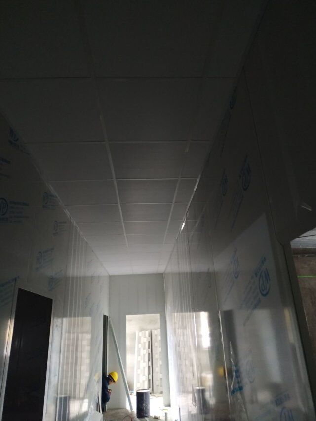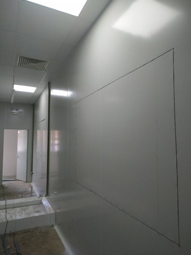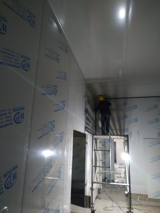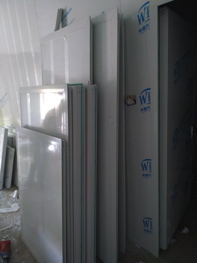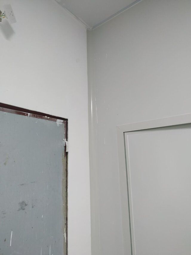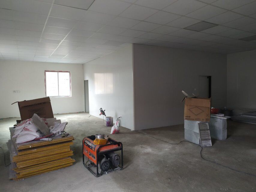 1.門鎖安裝施工,車間墻板撕膜,墻面打膠施工。