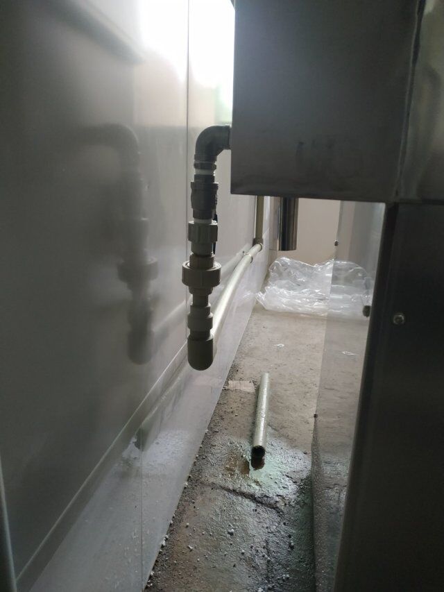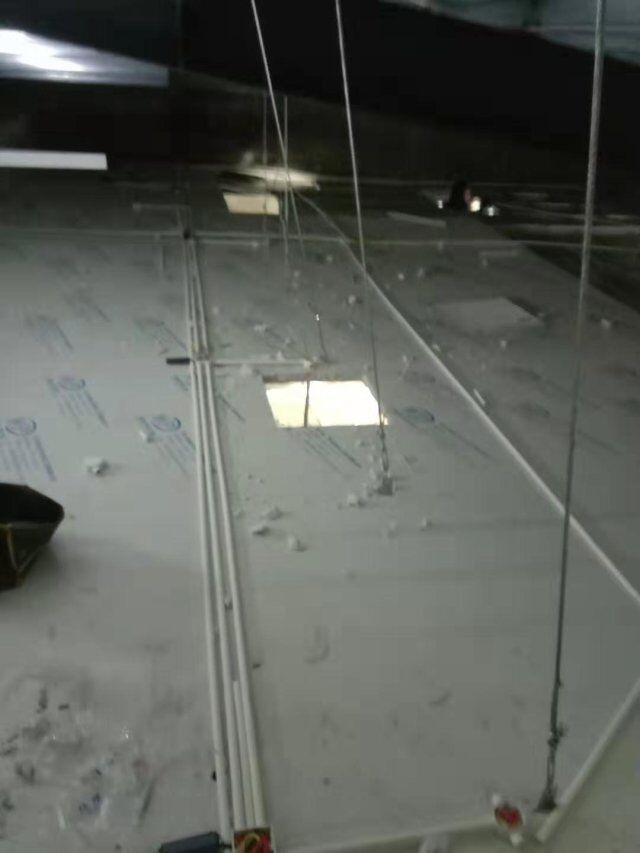 1.撕膜完成,打膠完成85%,圓弧安裝完成80%。2.給水管道安裝完成