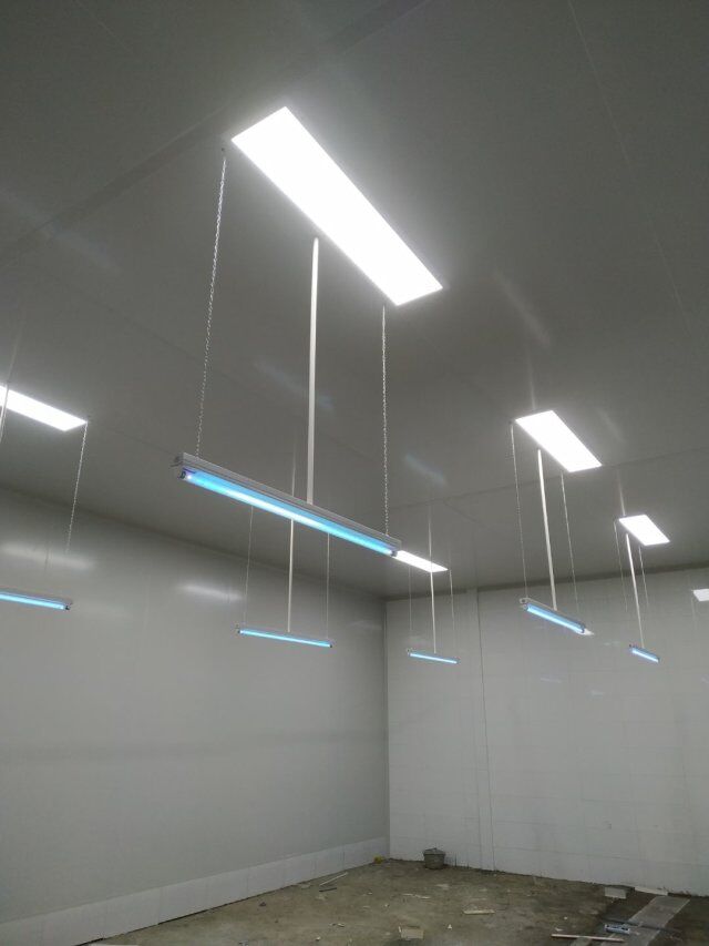 1.雙開門和物流門預制完成,撕膜打膠完成55%。2.燈具安裝完成60%,主管配管穿線完成。