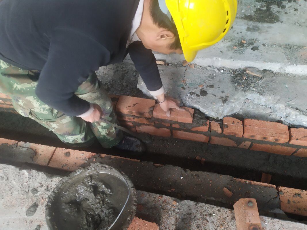排水溝破碎完成,建渣清理,排水溝砌磚施工
