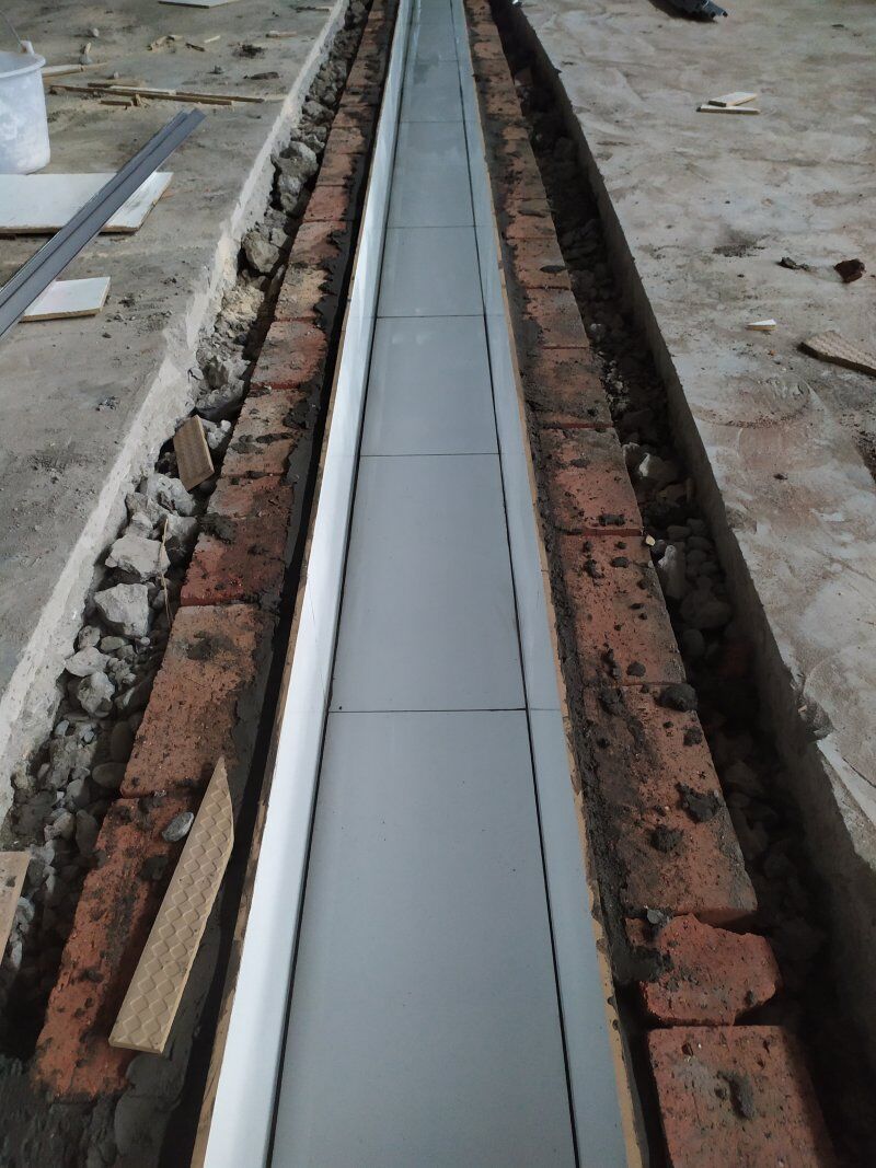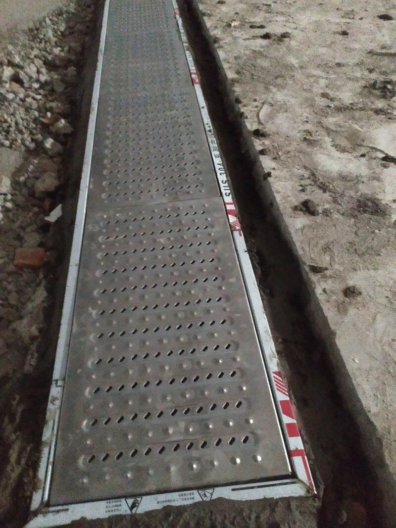 1排水溝蓋板安裝 2排水溝底貼瓷磚安裝 3新增排水暗管清理 4彩板及鋁型材到場