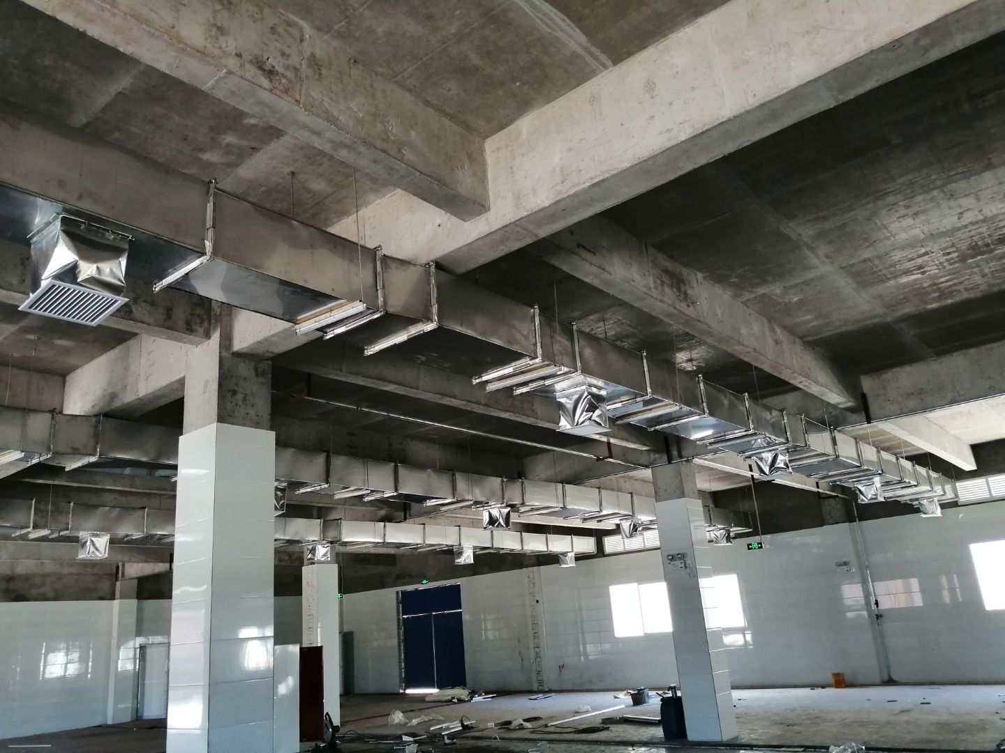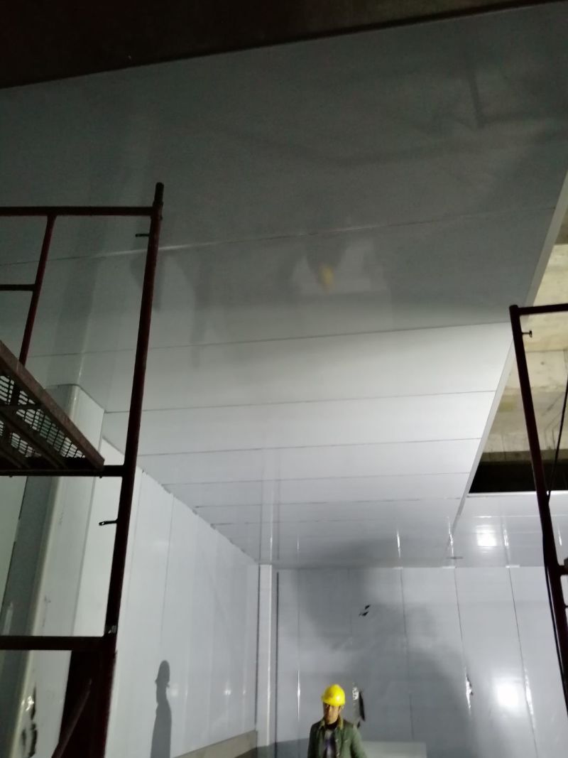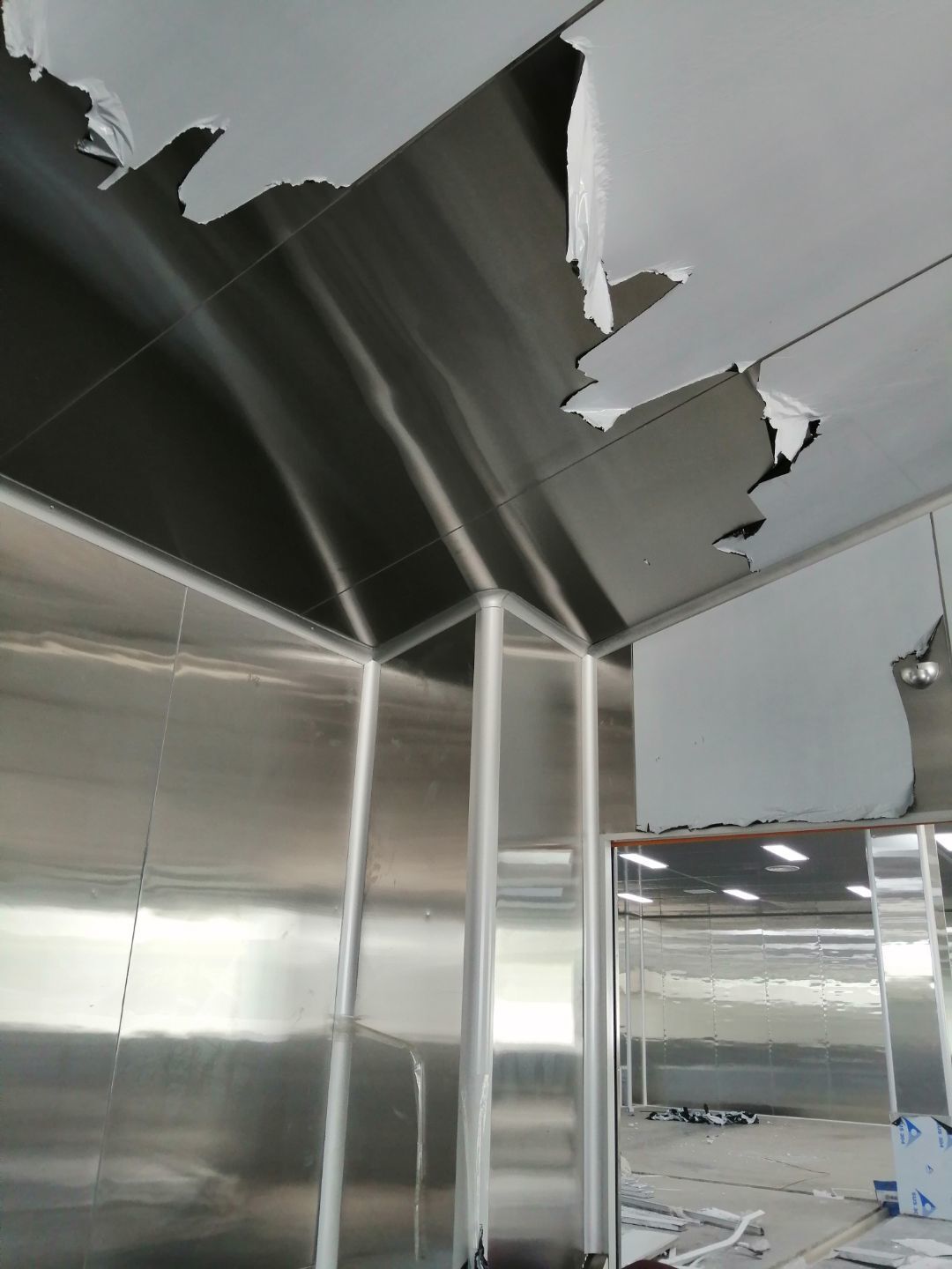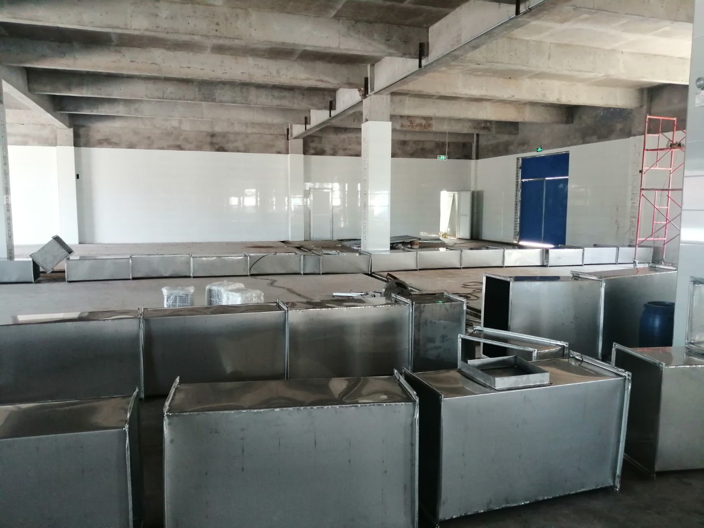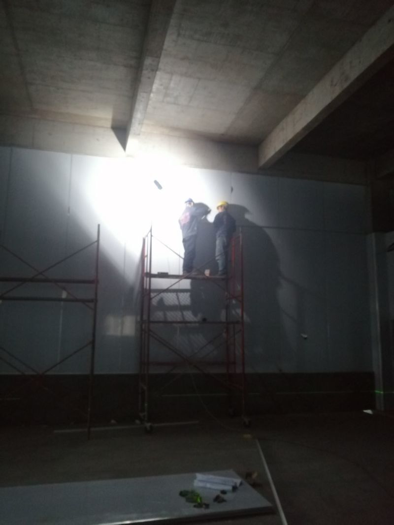1.風(fēng)管組裝完成,保溫完成百分之五十 2.彩鋼板開始全面吊頂