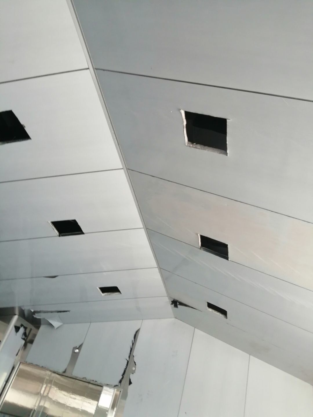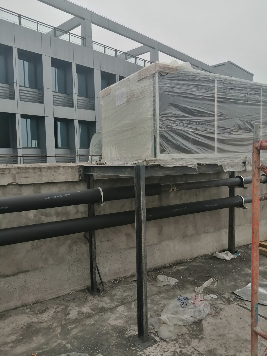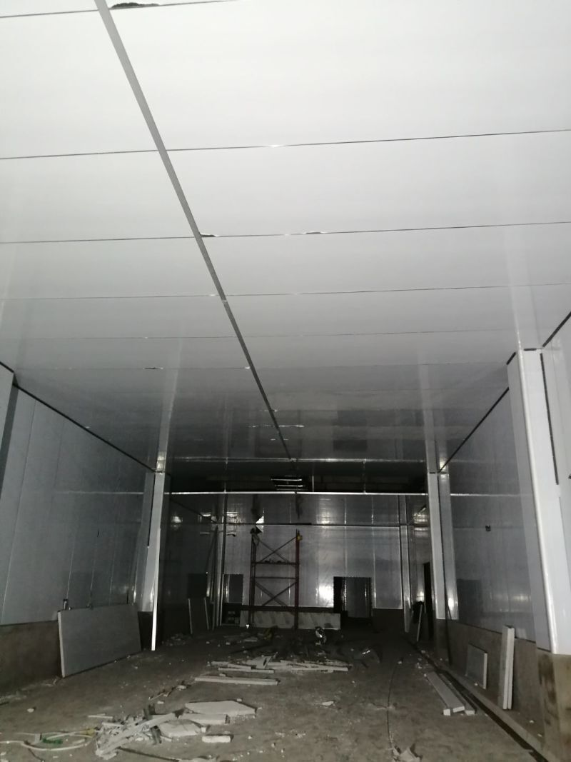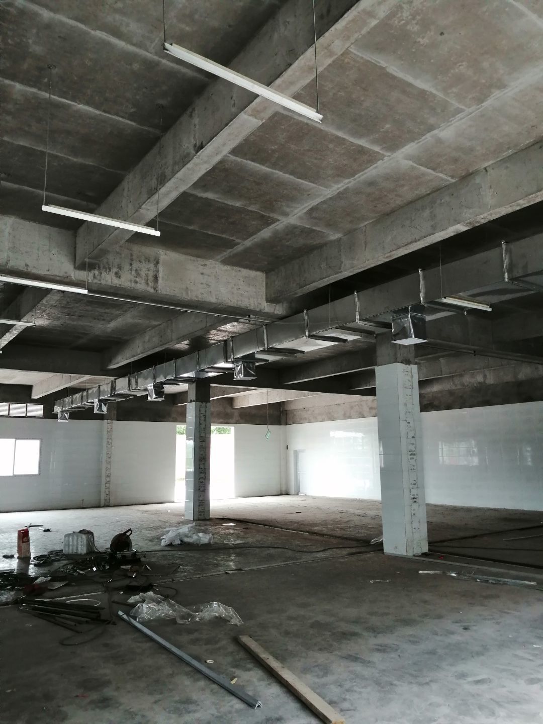 1.風(fēng)管組裝完成,保溫完成百分之五十 2.彩鋼板開始全面吊頂