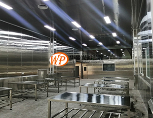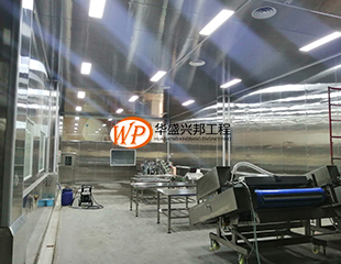 吊筋安裝;現(xiàn)有墻板施工;殺菌間照明電完成布線;廁所布線,給水施工開始