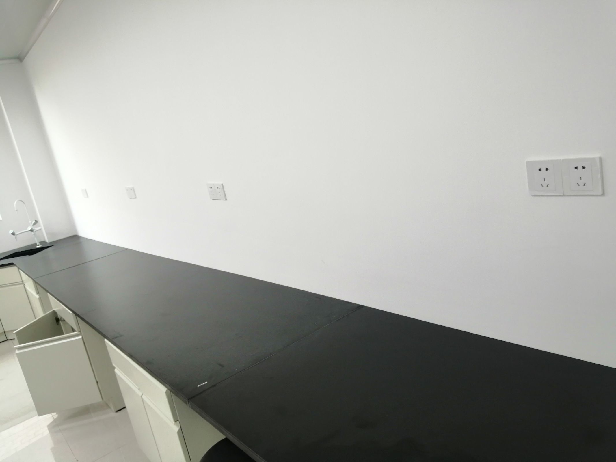 1.更衣間甲方乳膠漆完成可以安裝照明電,插座 2車間,增量封門洞一個(gè),加寬門洞一個(gè),車間供水發(fā)現(xiàn)一個(gè)點(diǎn)位有微弱寖水需處理 3.實(shí)驗(yàn)室工作臺(tái)安裝完成,需要處理掉漆位置,和增加擋板。
