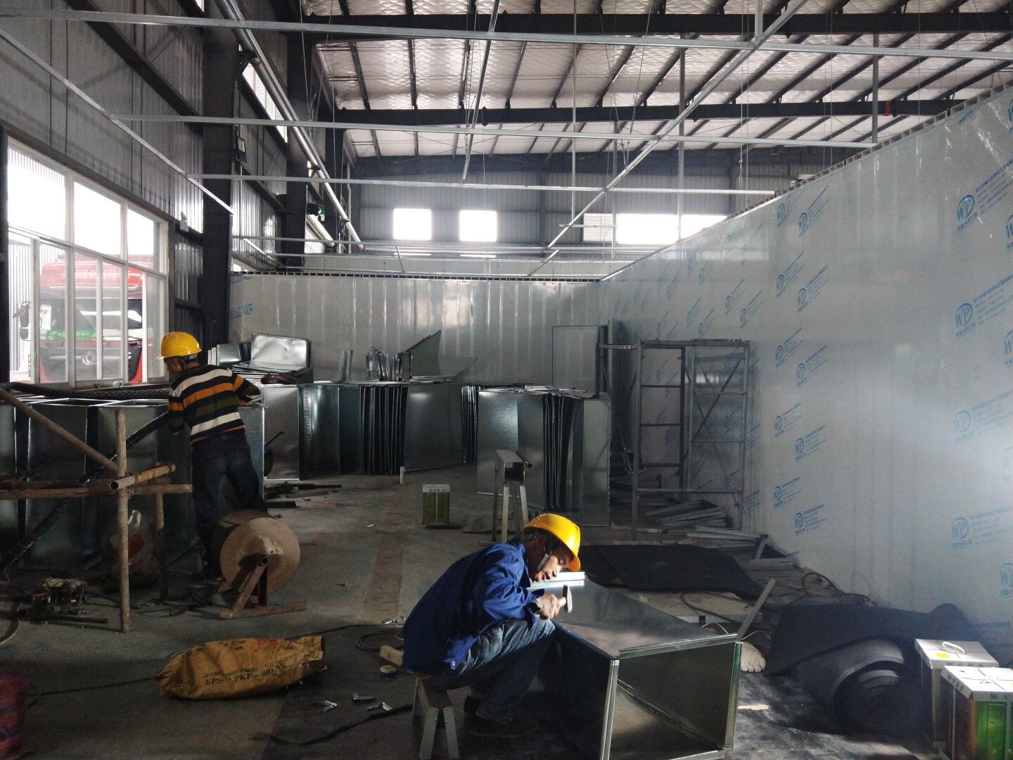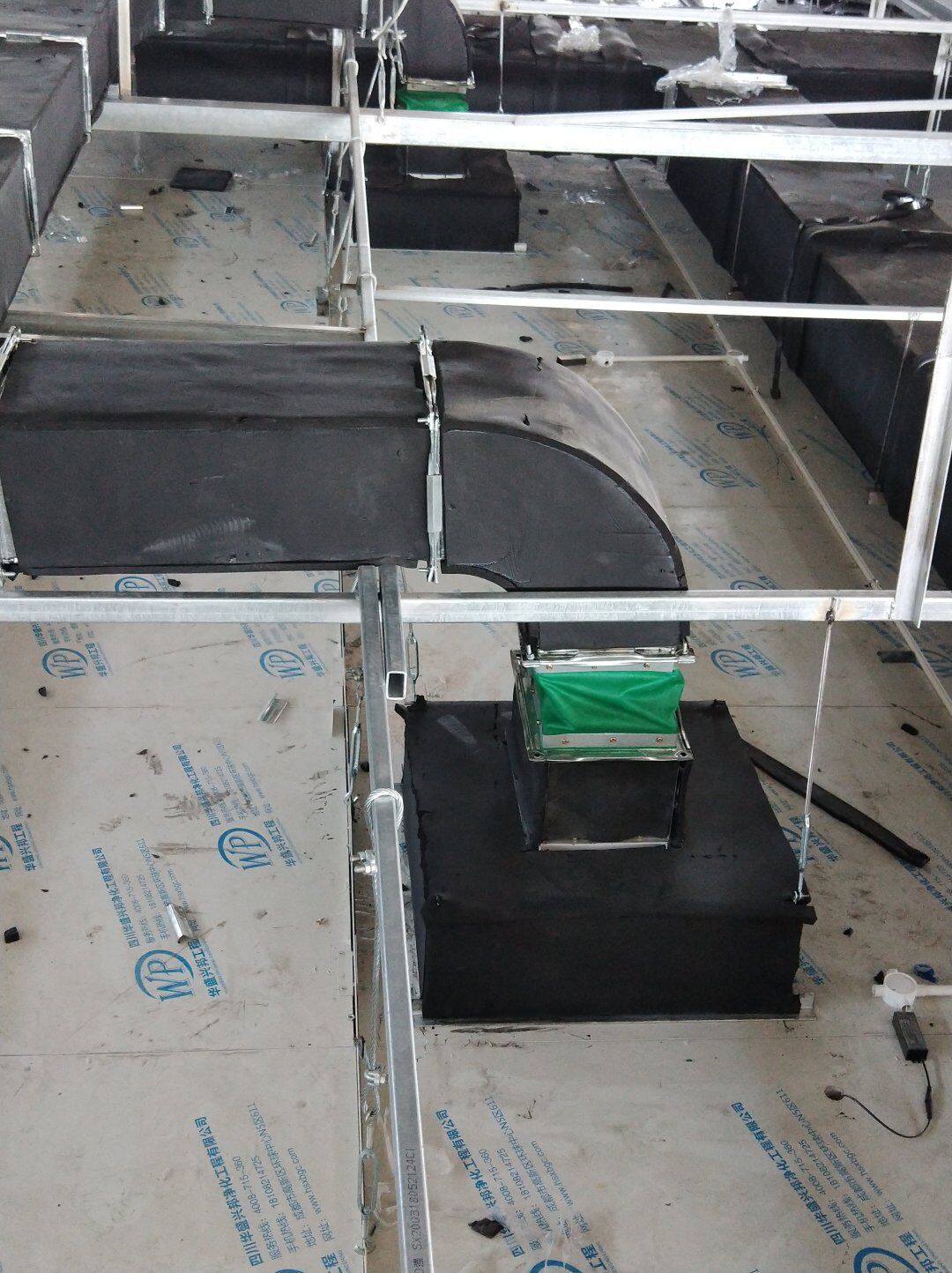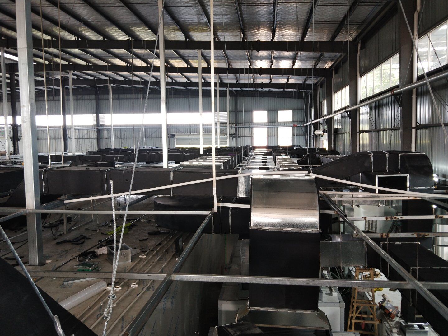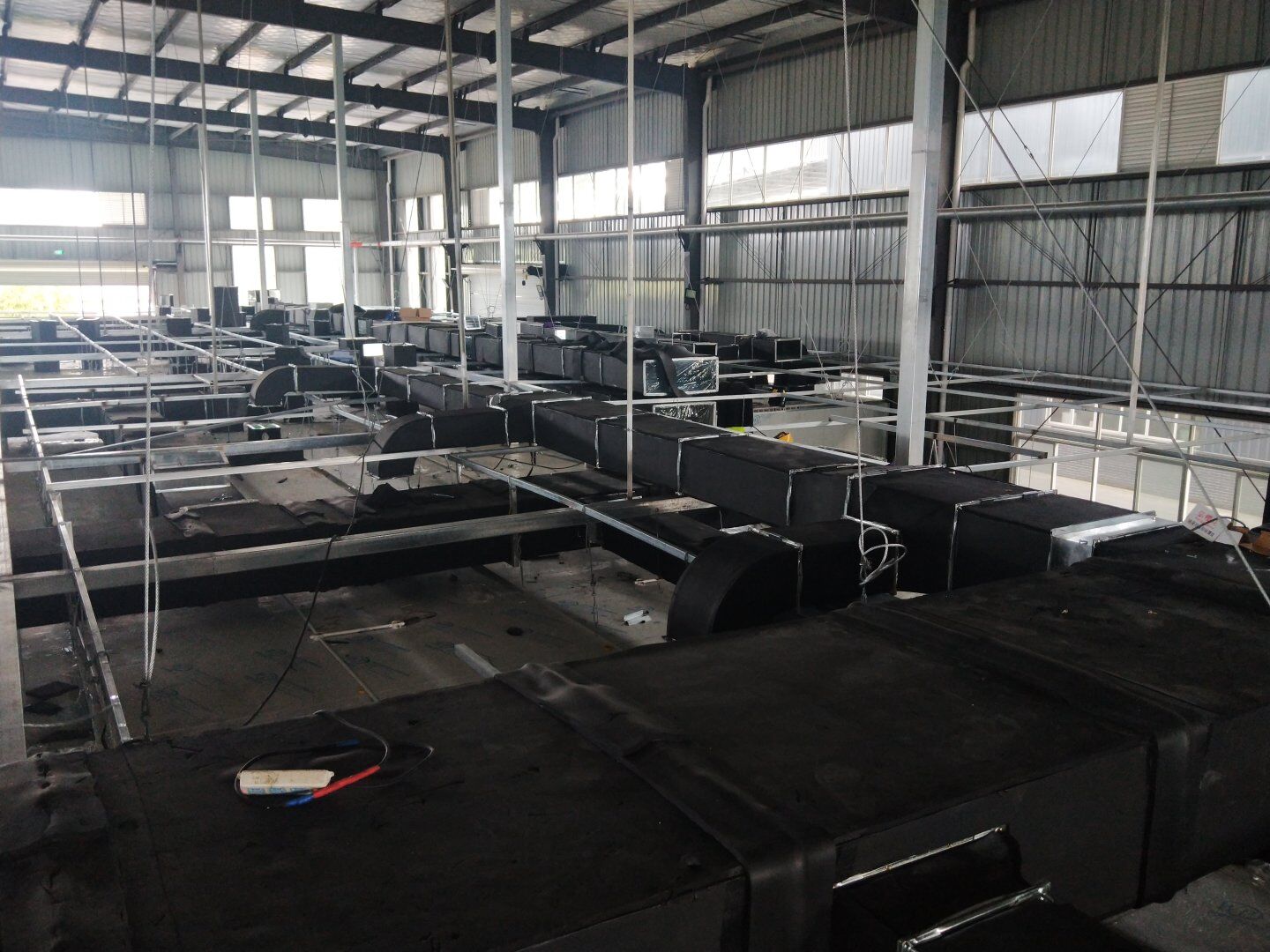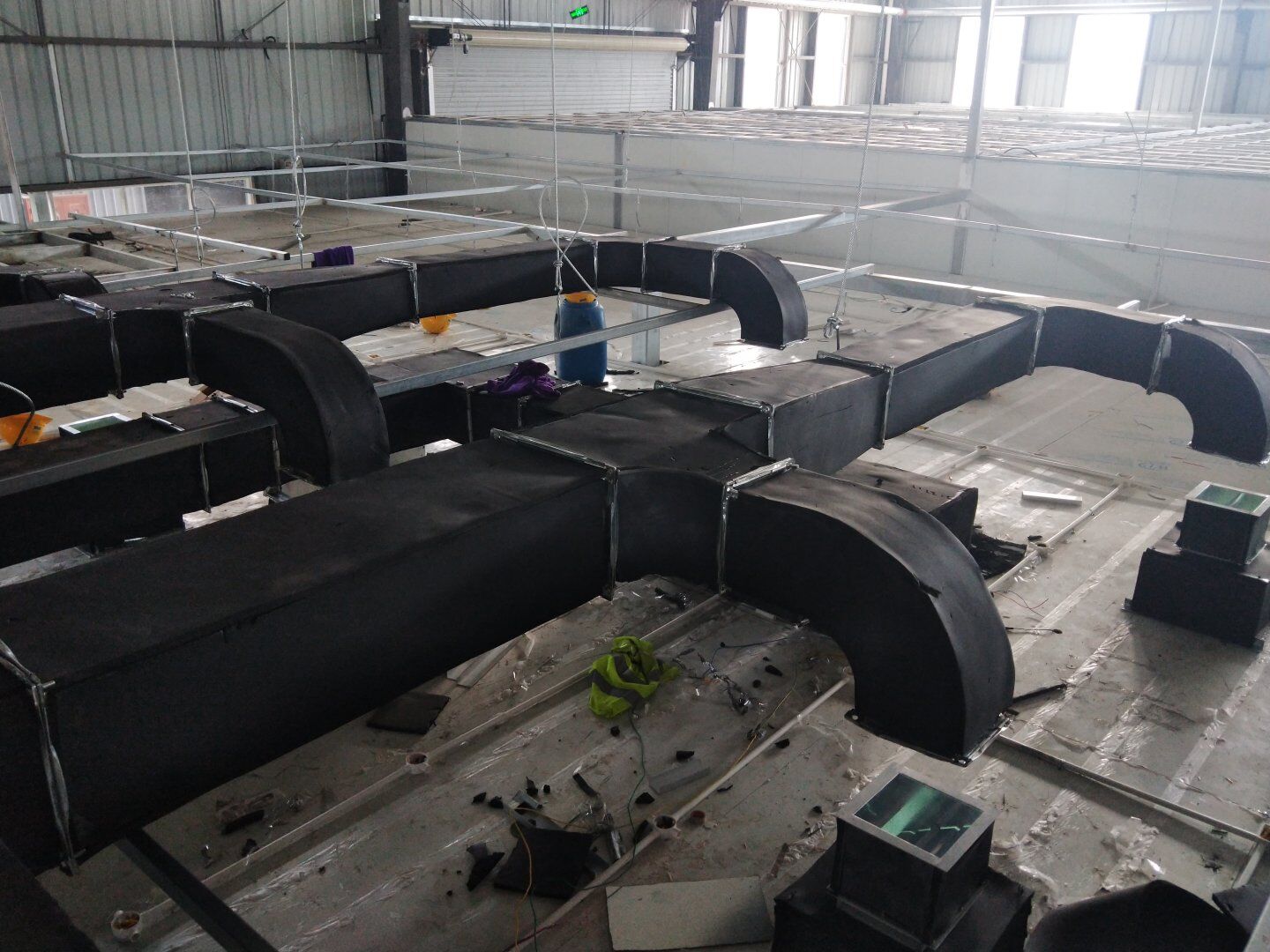 口罩廠風(fēng)管主管組裝完成80%并完成相應(yīng)保溫。