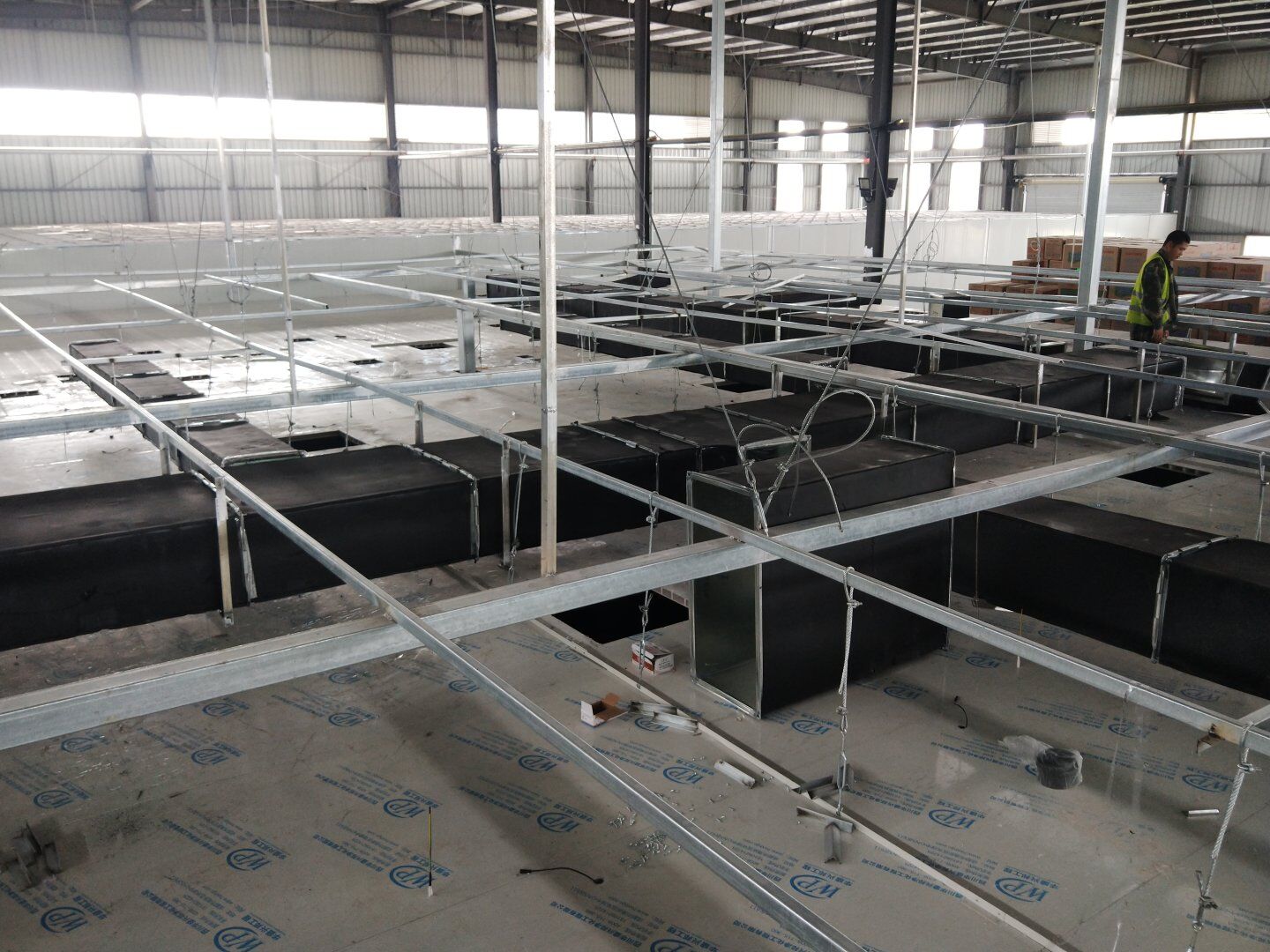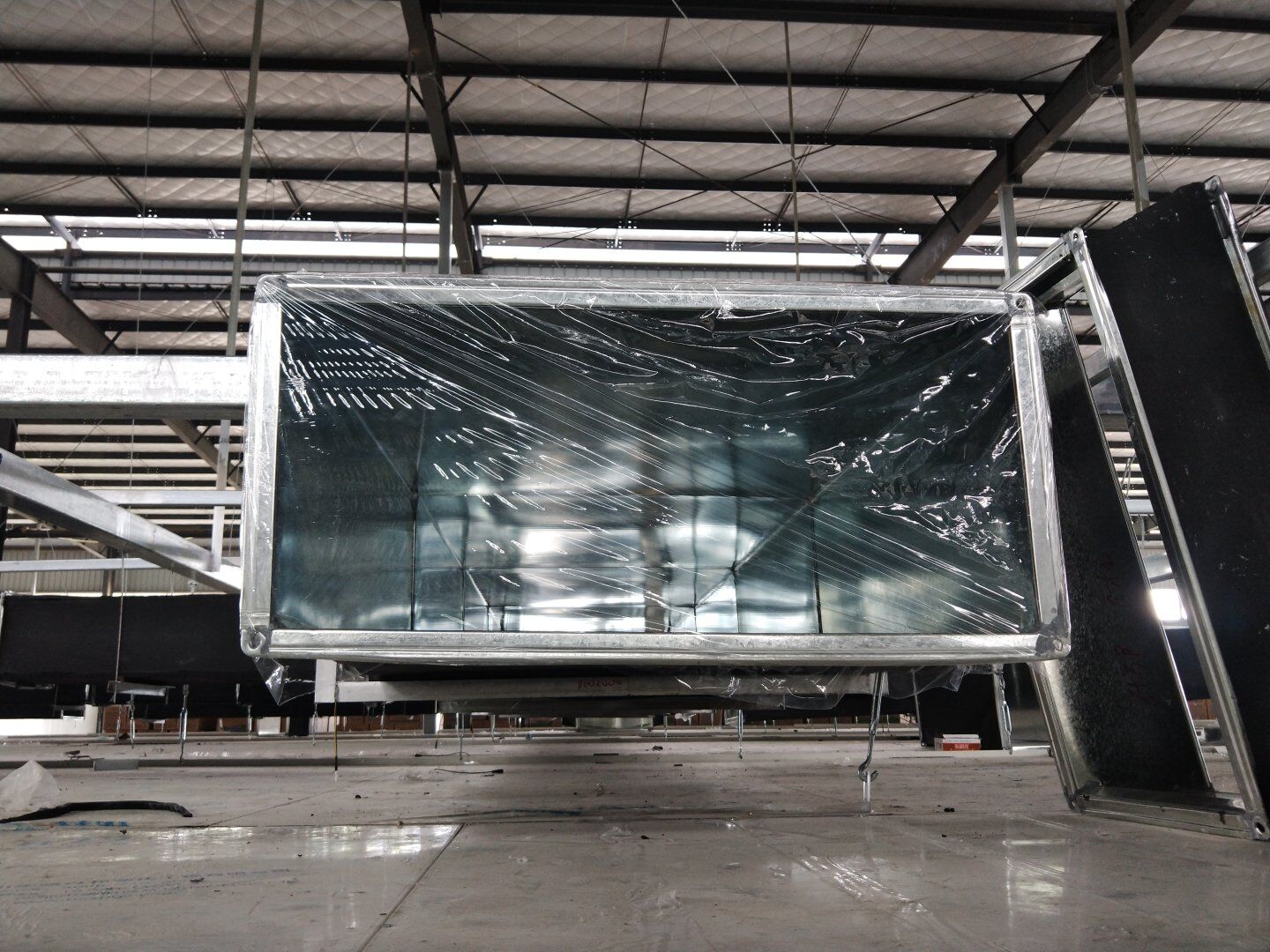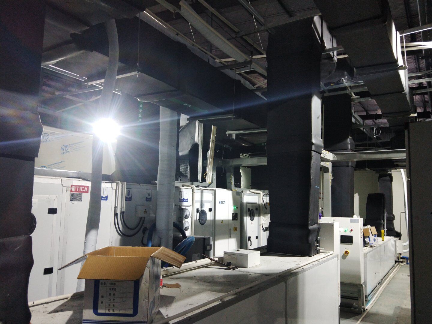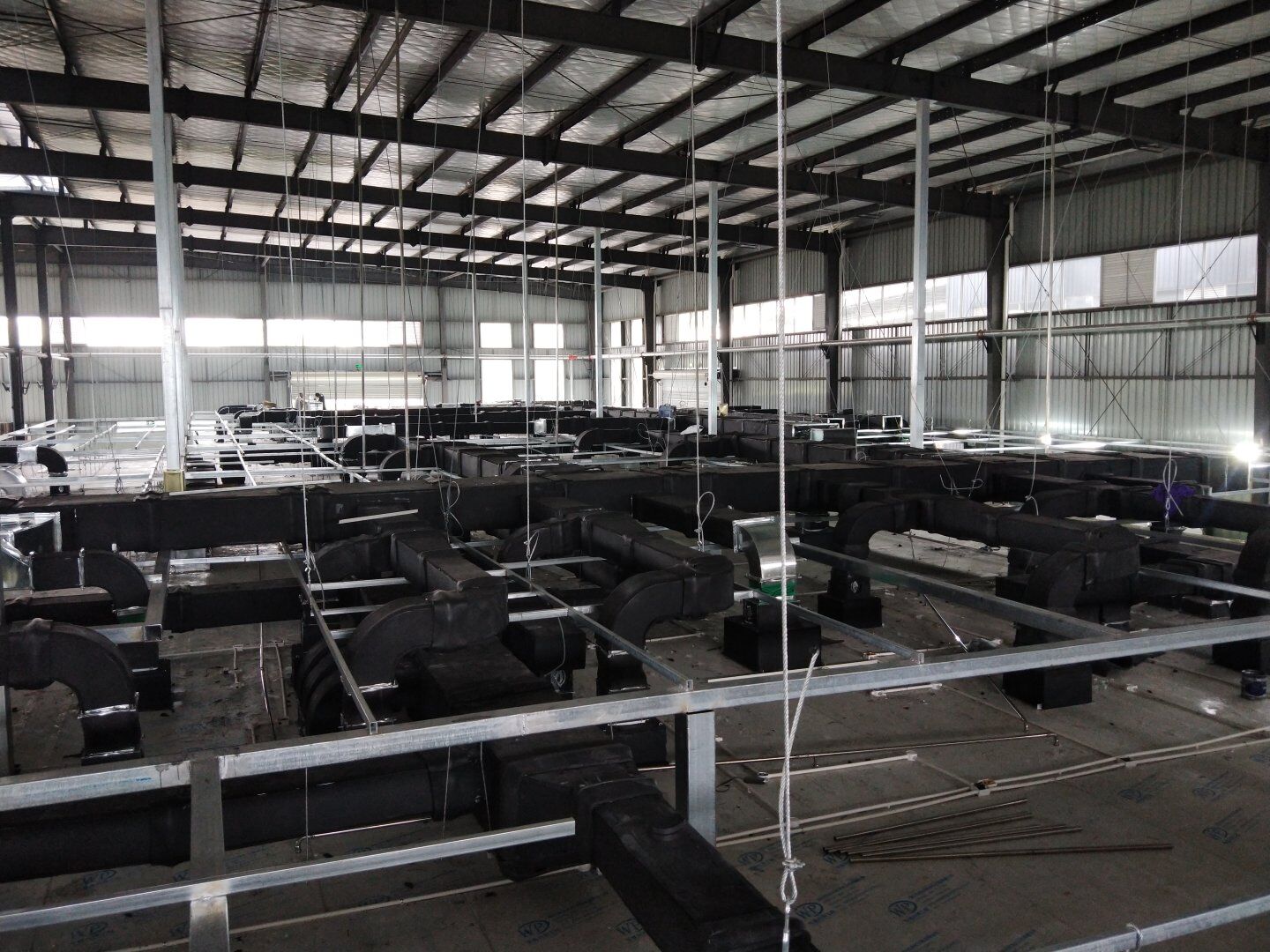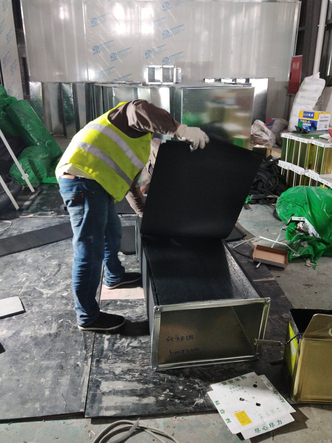 口罩廠風(fēng)管主管組裝完成80%并完成相應(yīng)保溫。