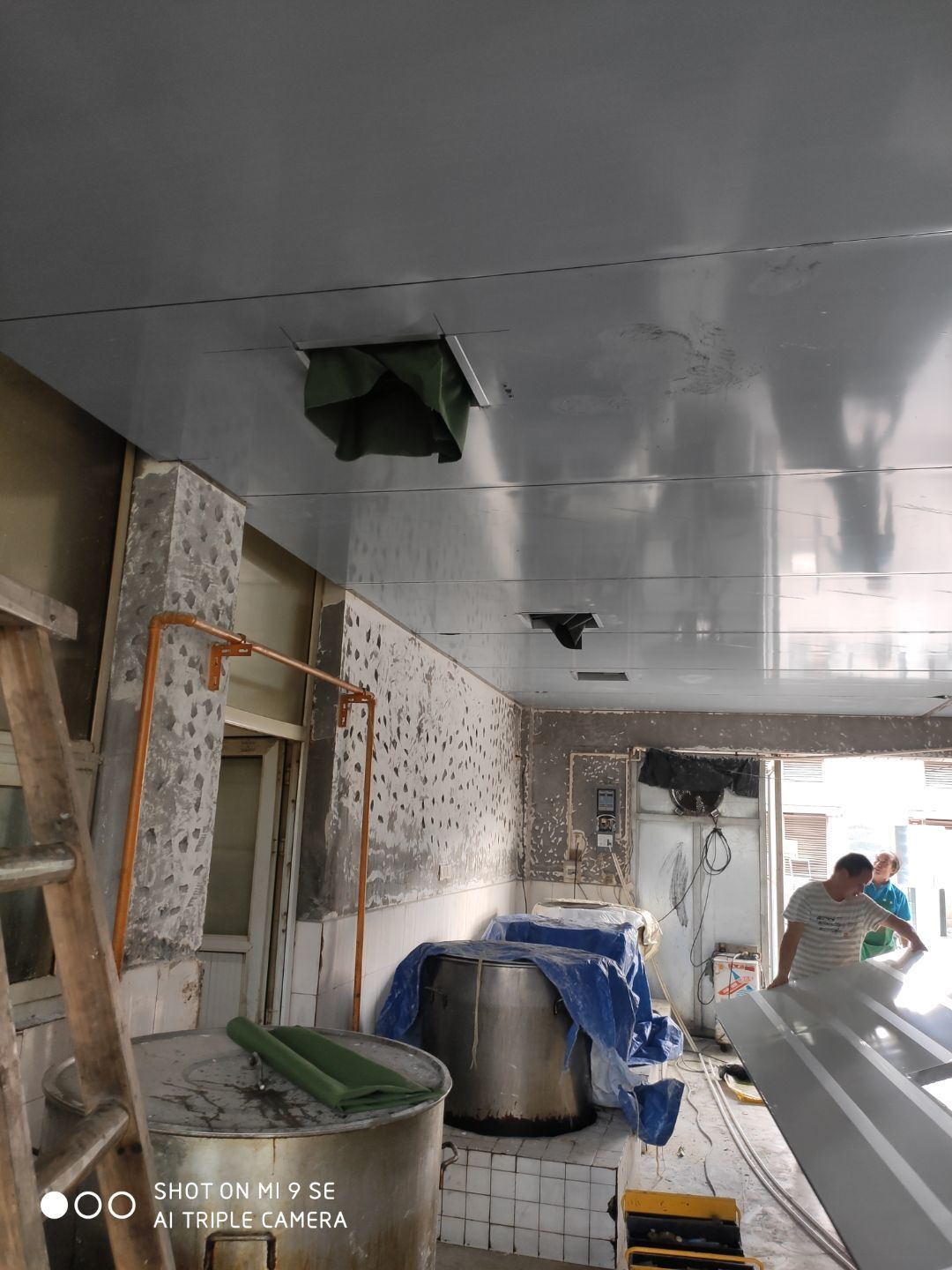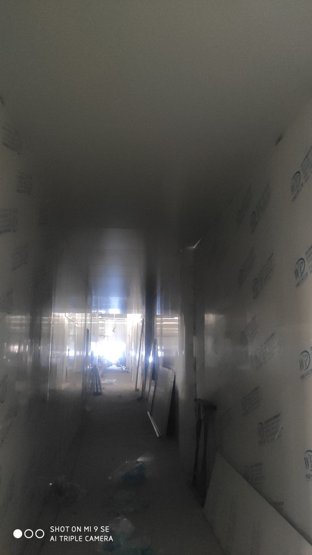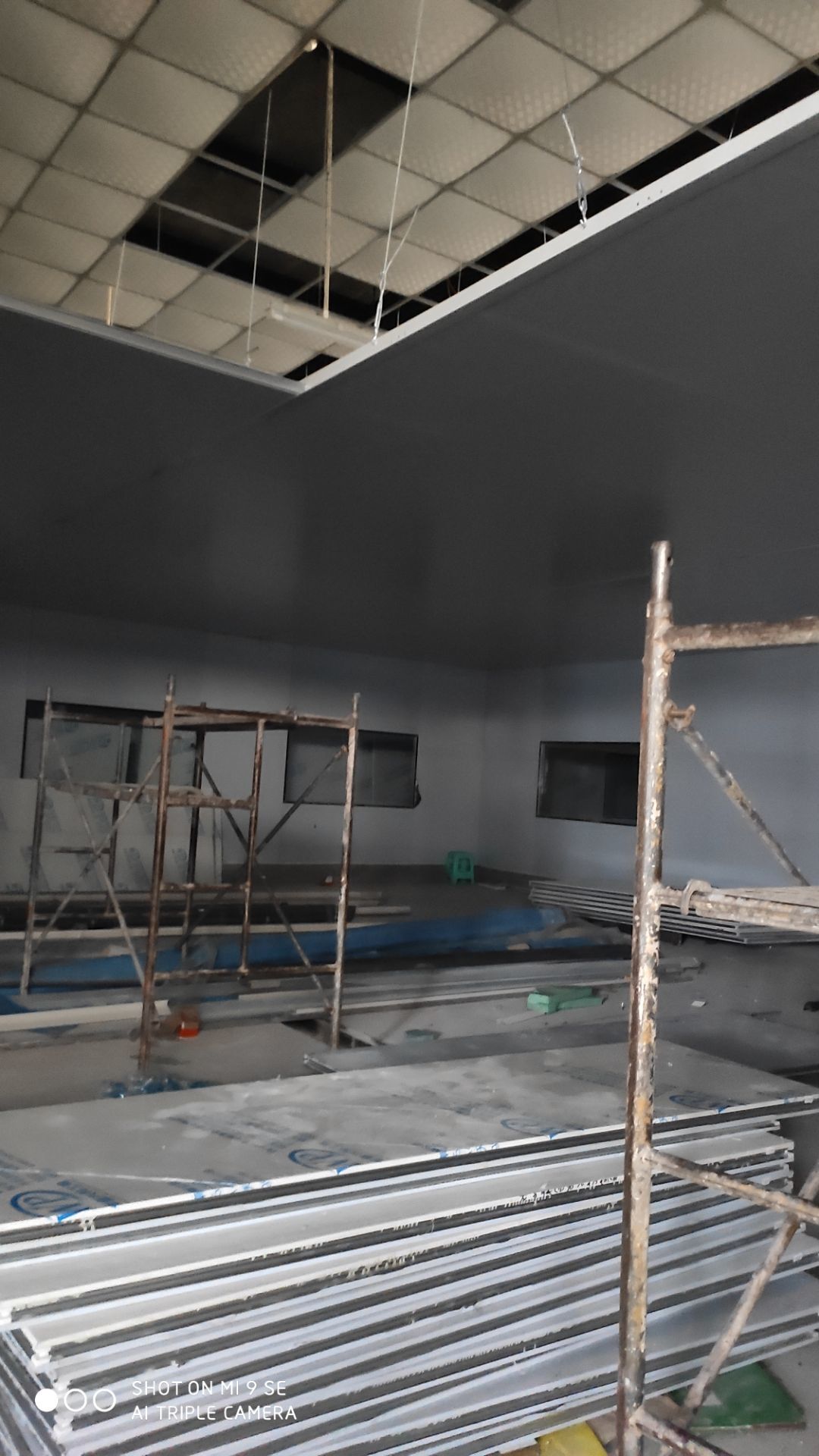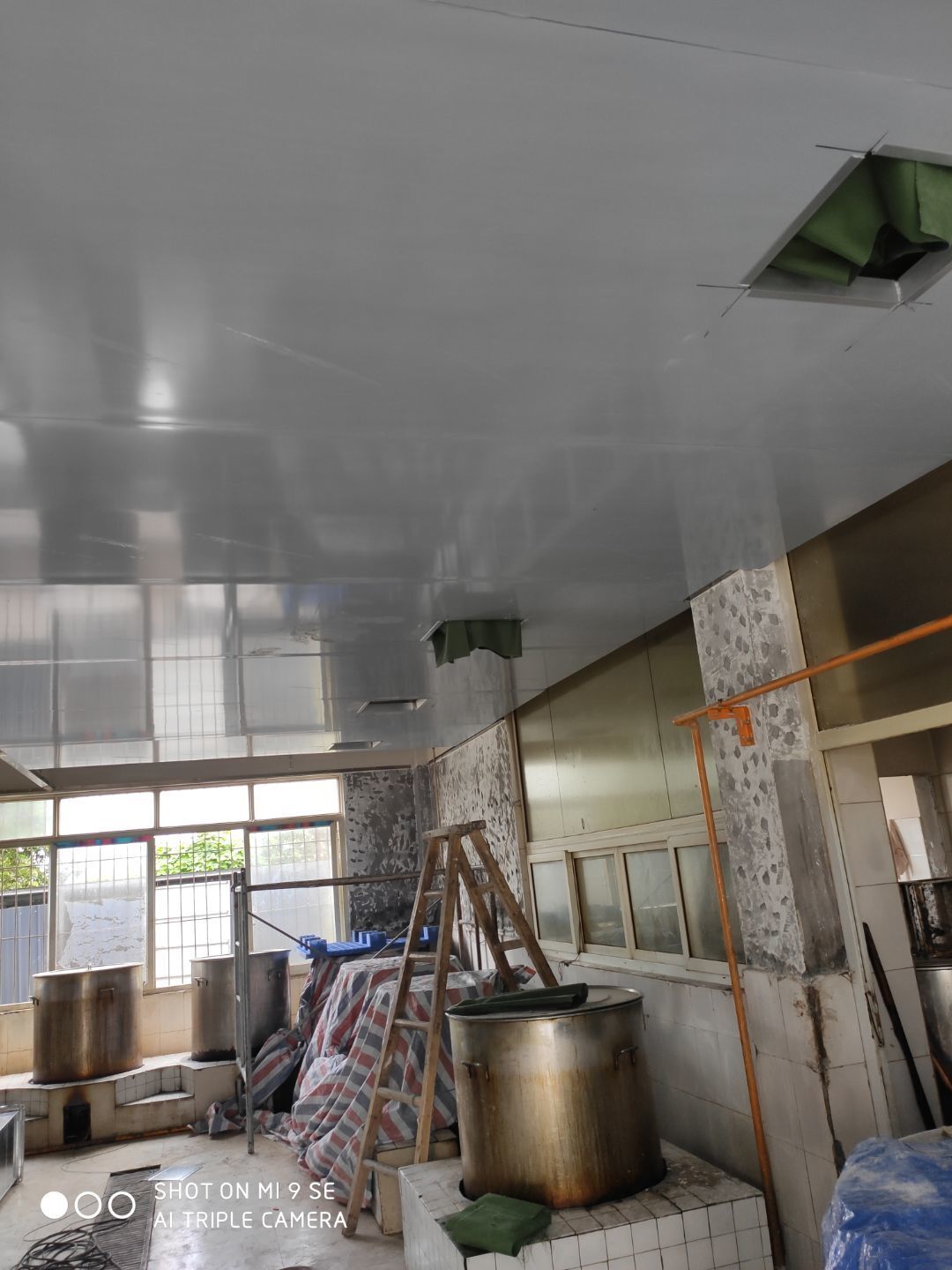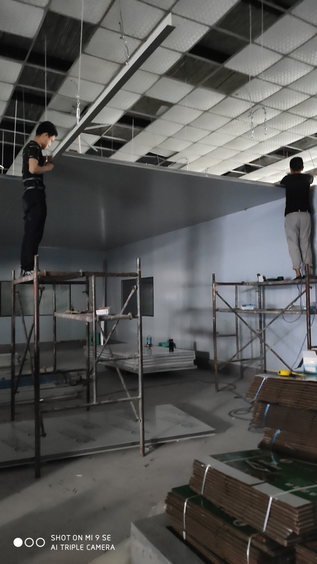 油房改造開始,頂板安裝完成一間,風(fēng)管進(jìn)場(chǎng)安裝