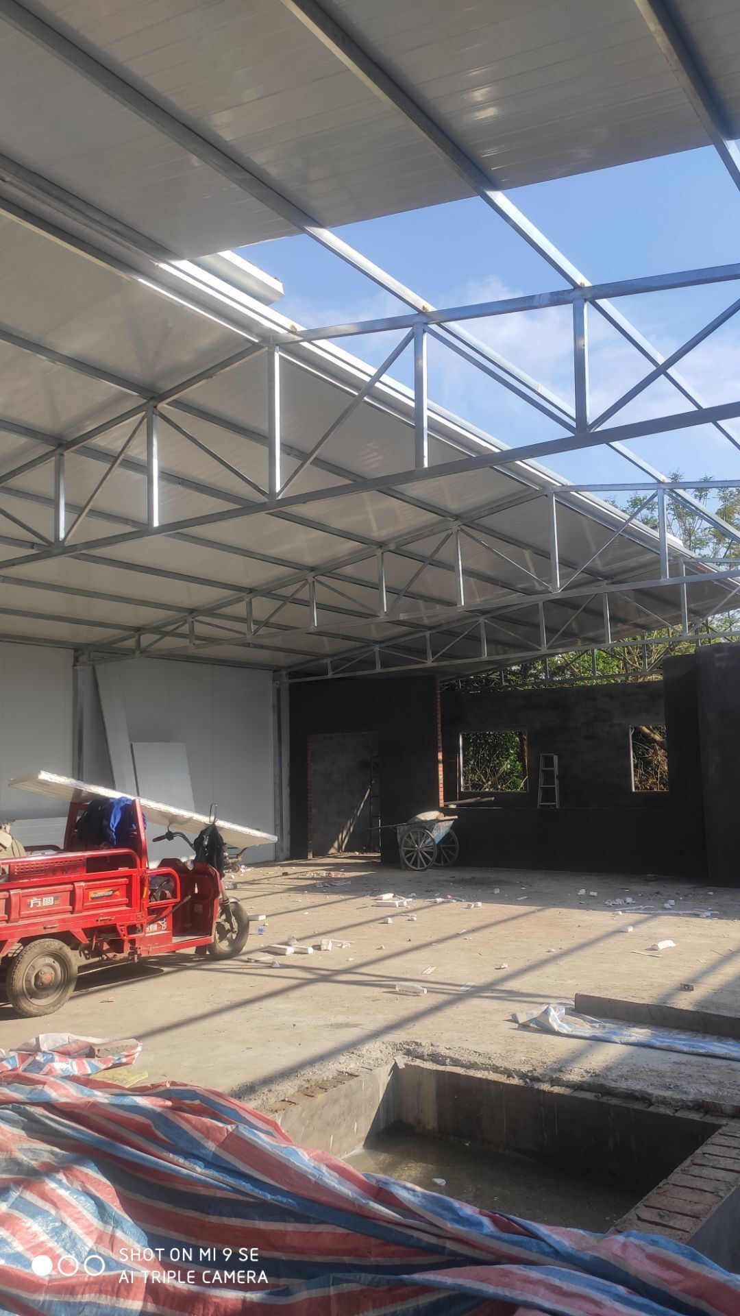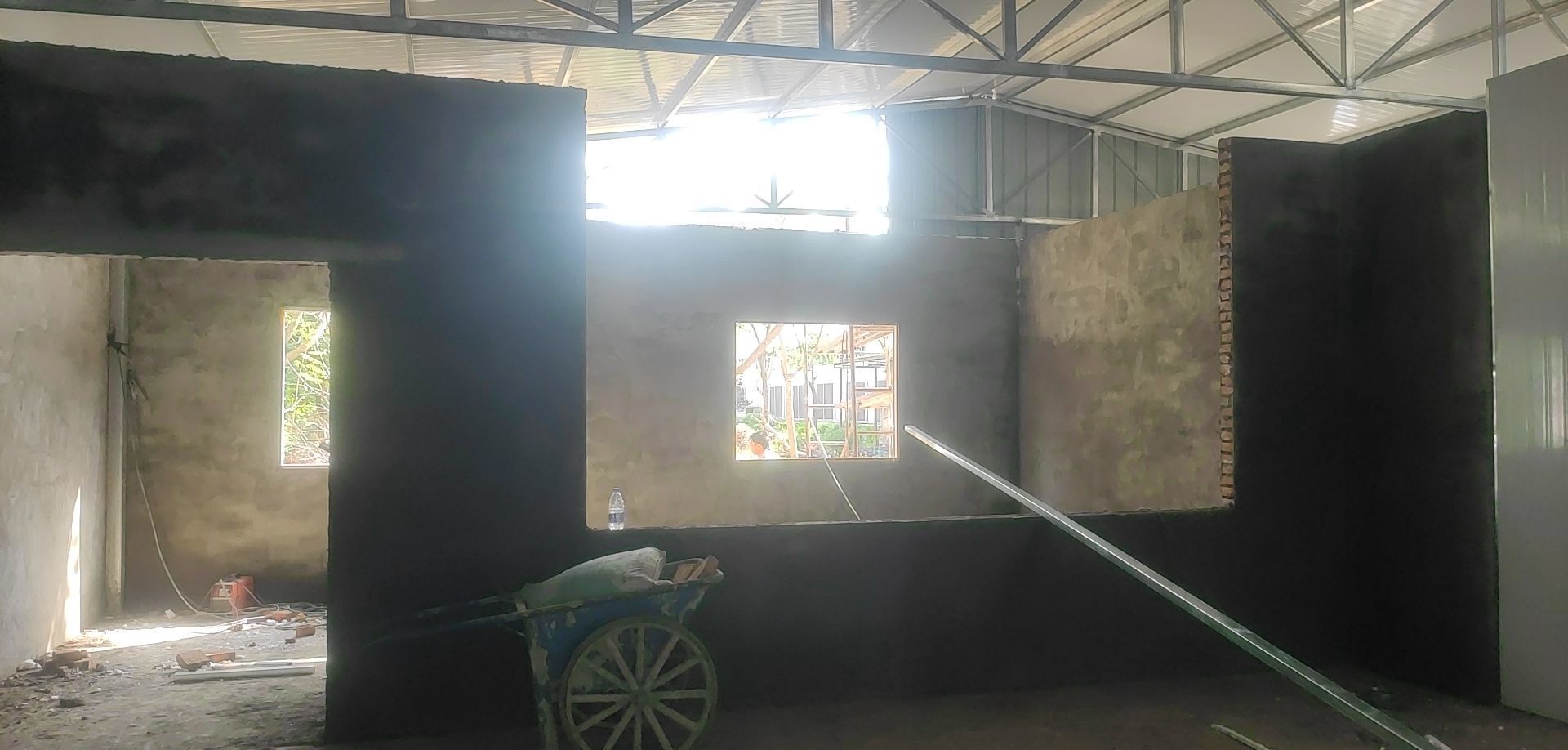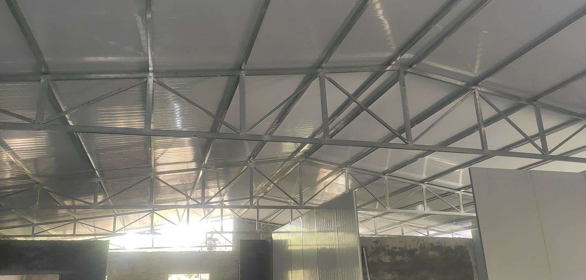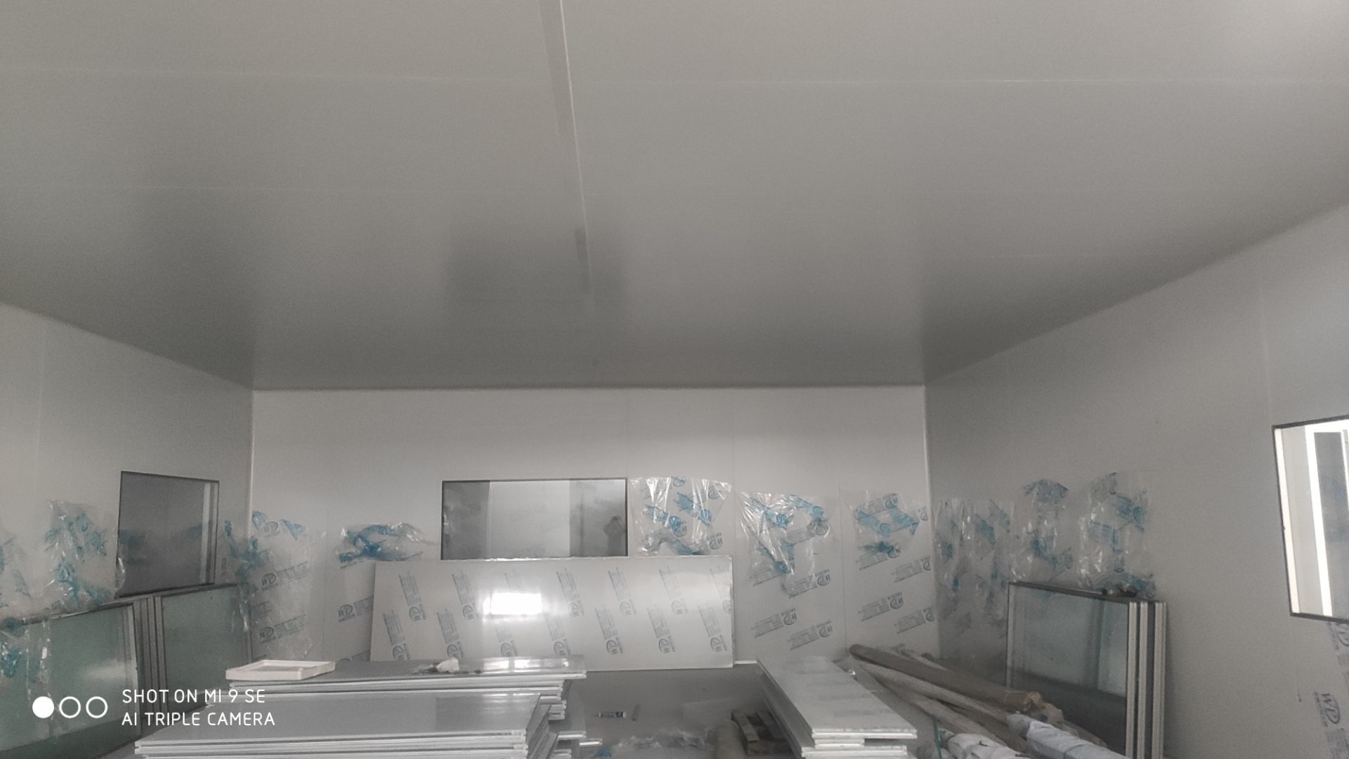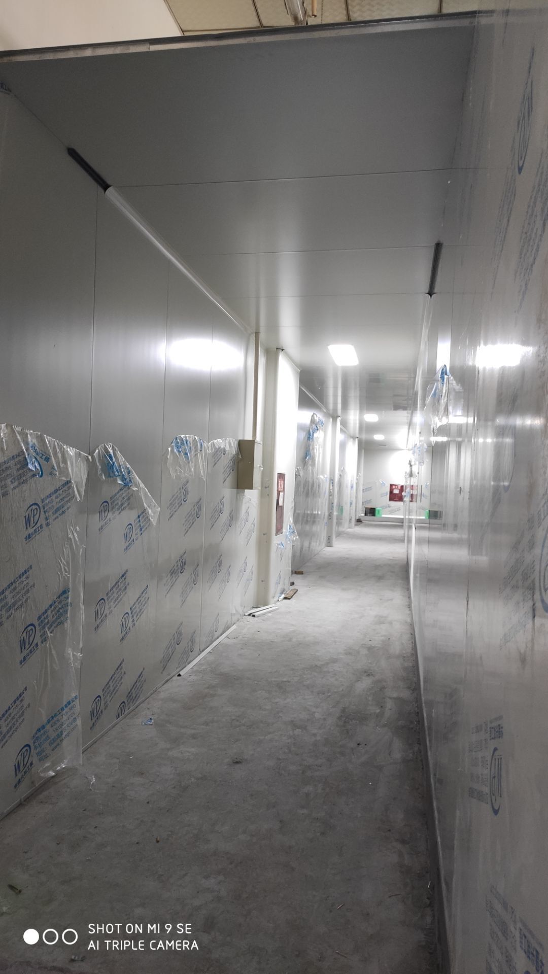 油房改造開始,頂板安裝完成一間,風(fēng)管進(jìn)場(chǎng)安裝