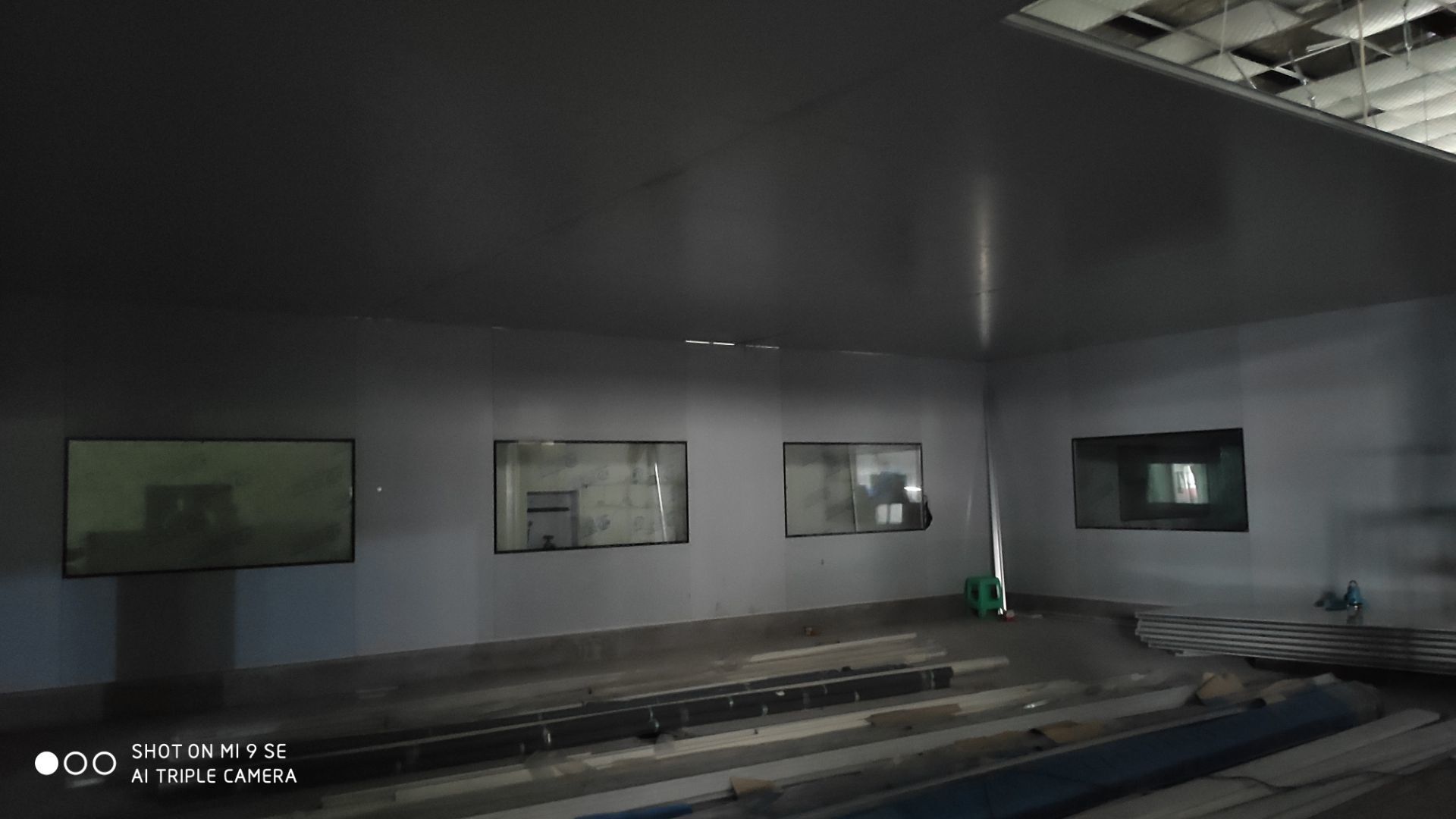 車間燈全部點(diǎn)亮,換氣扇開洞完成,機(jī)器設(shè)備安裝完成