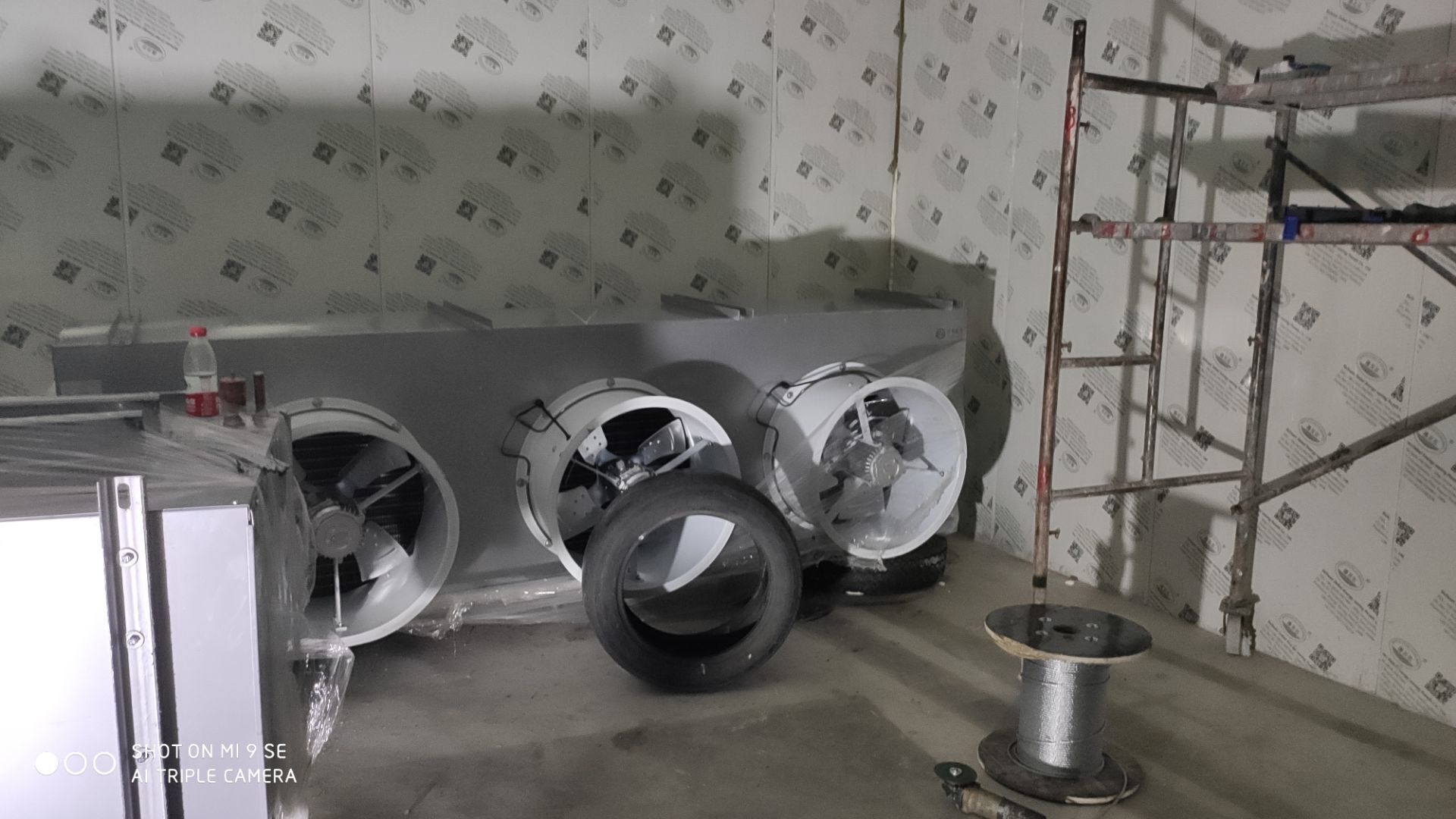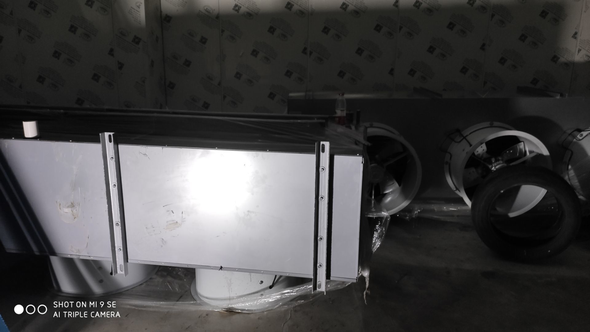 風(fēng)管安裝完成50%,頂板完成50%,風(fēng)機(jī)到現(xiàn)場(chǎng)
