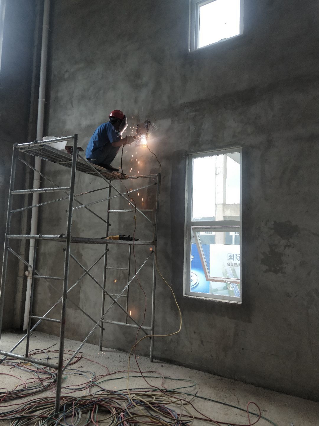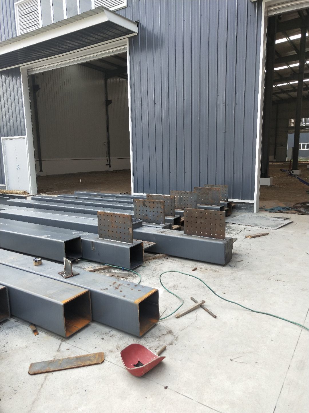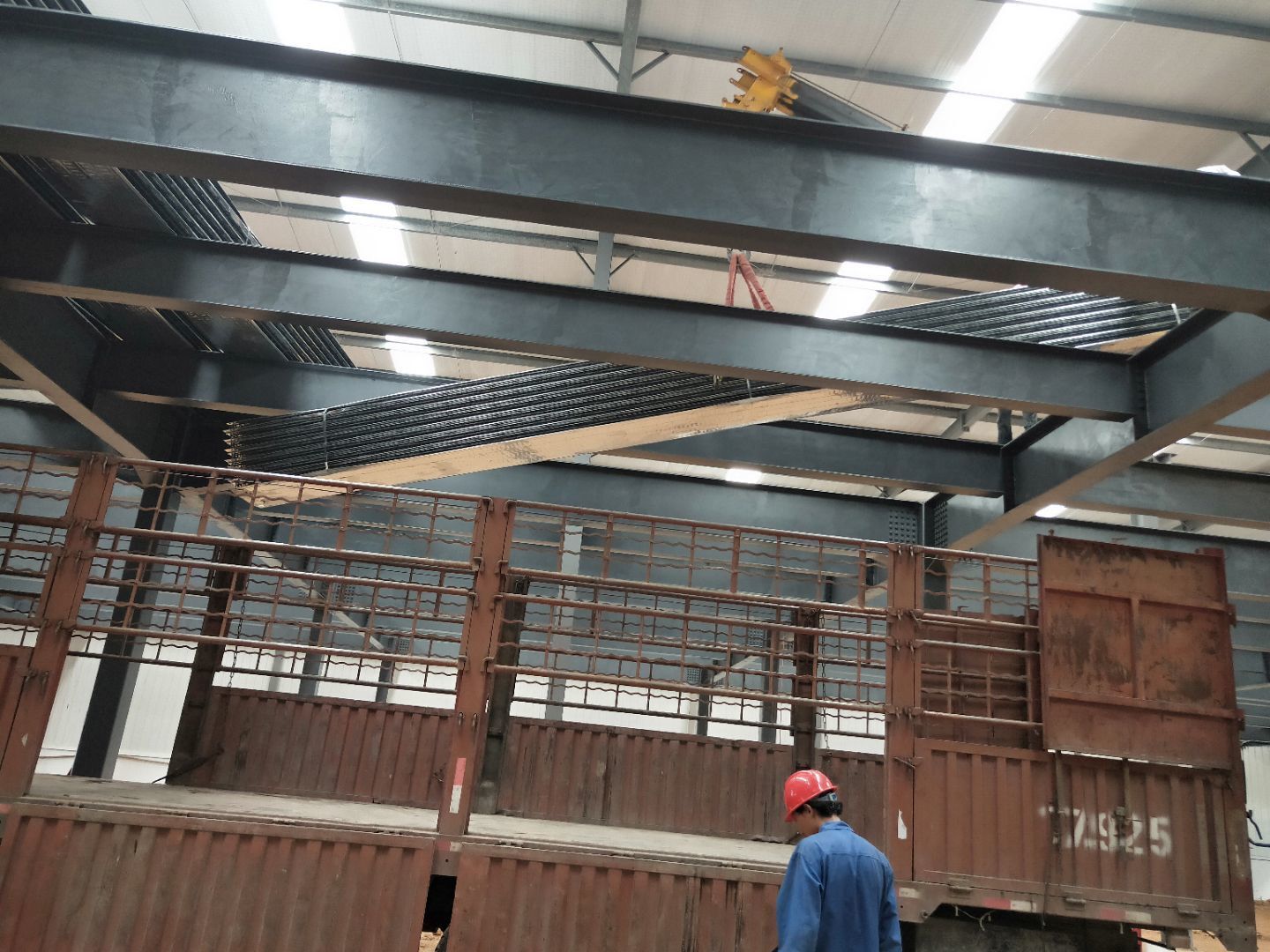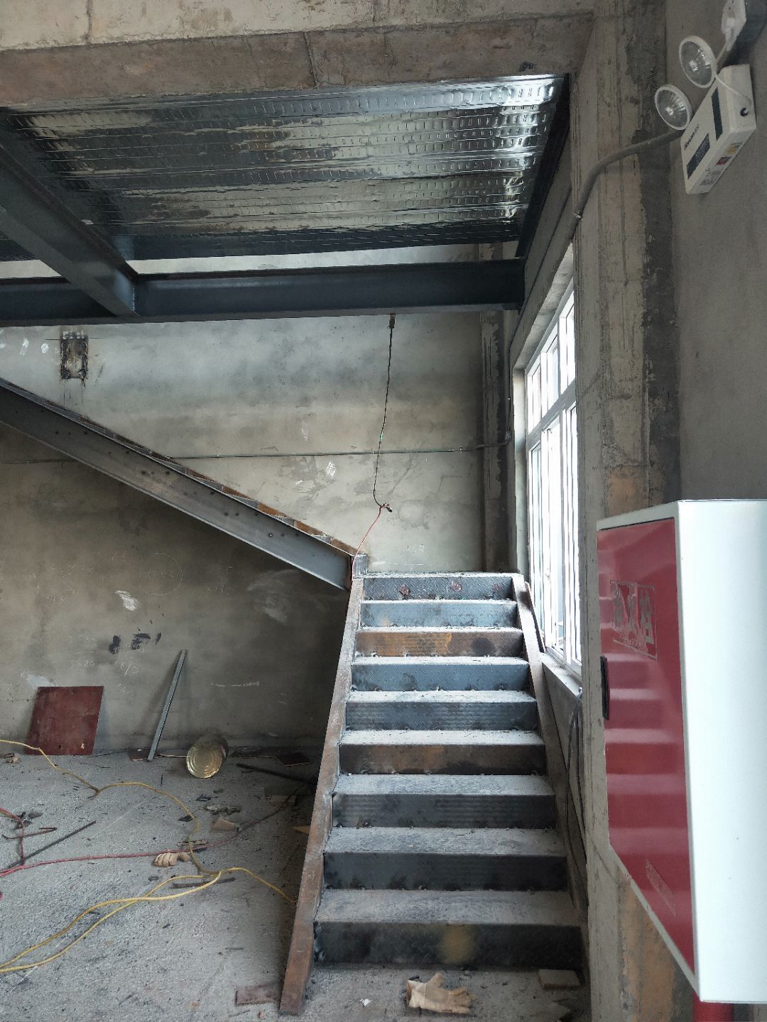 1、柱腳焊接加固 2、樓梯制作,樓板材料到場(chǎng)