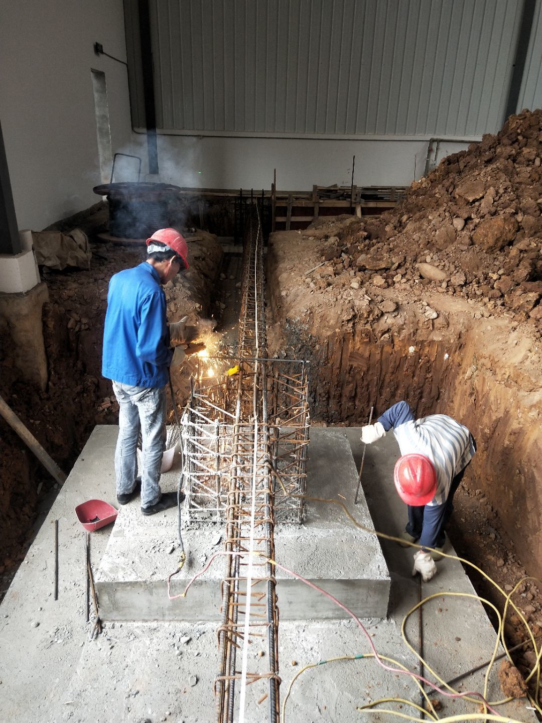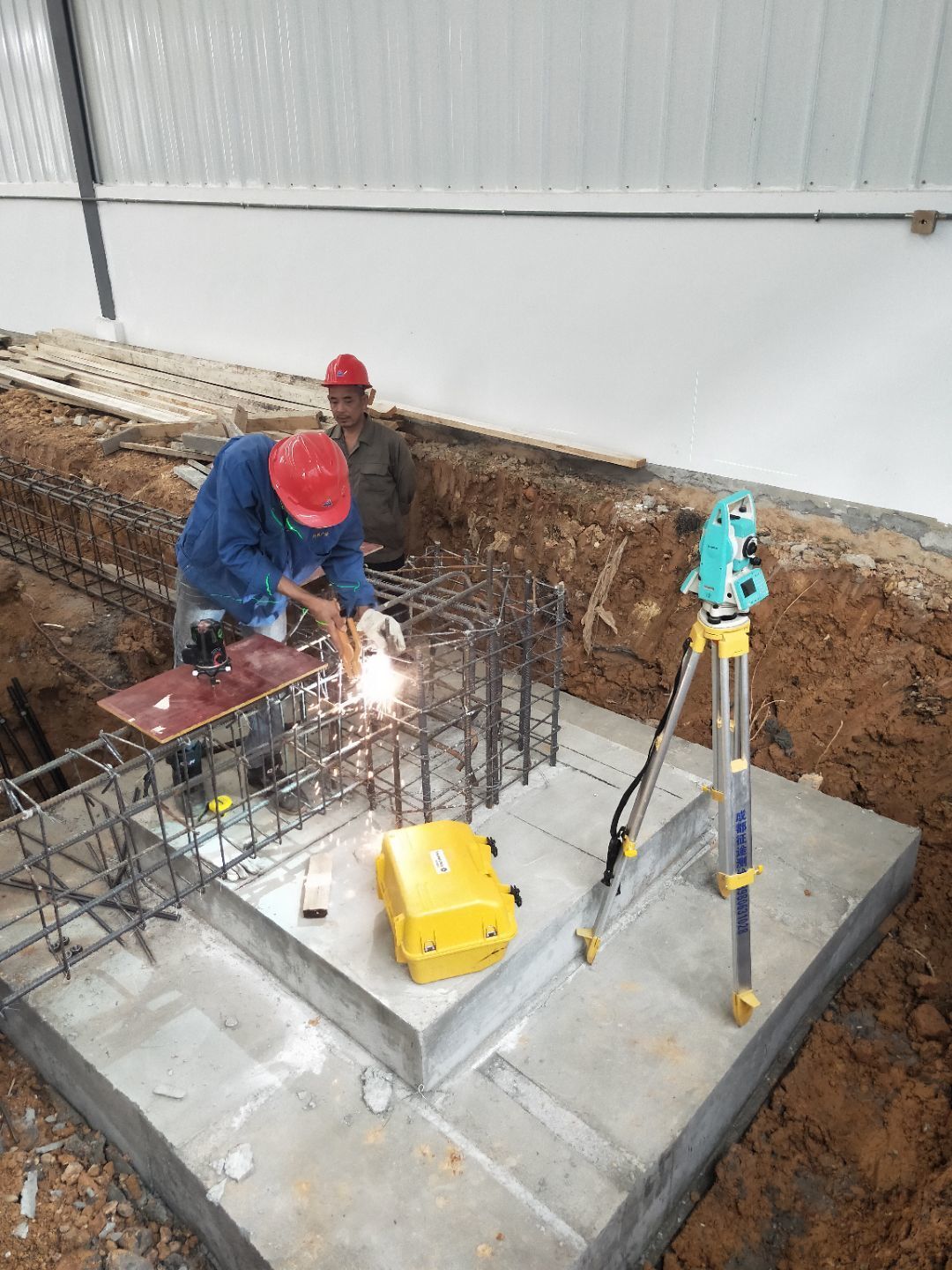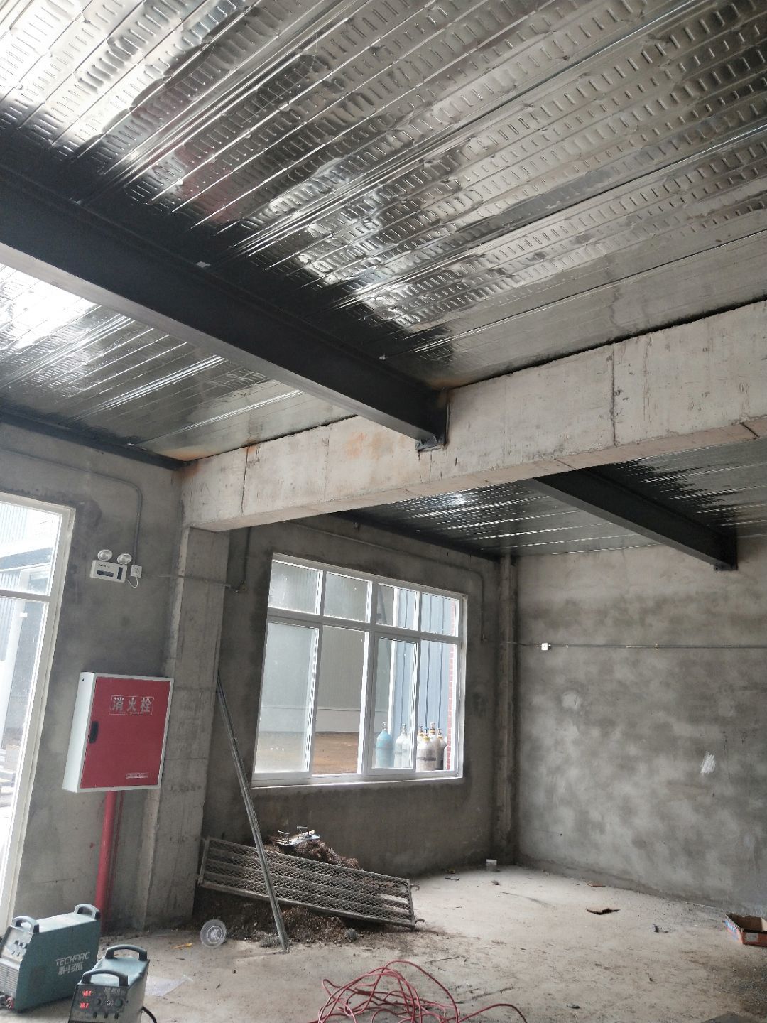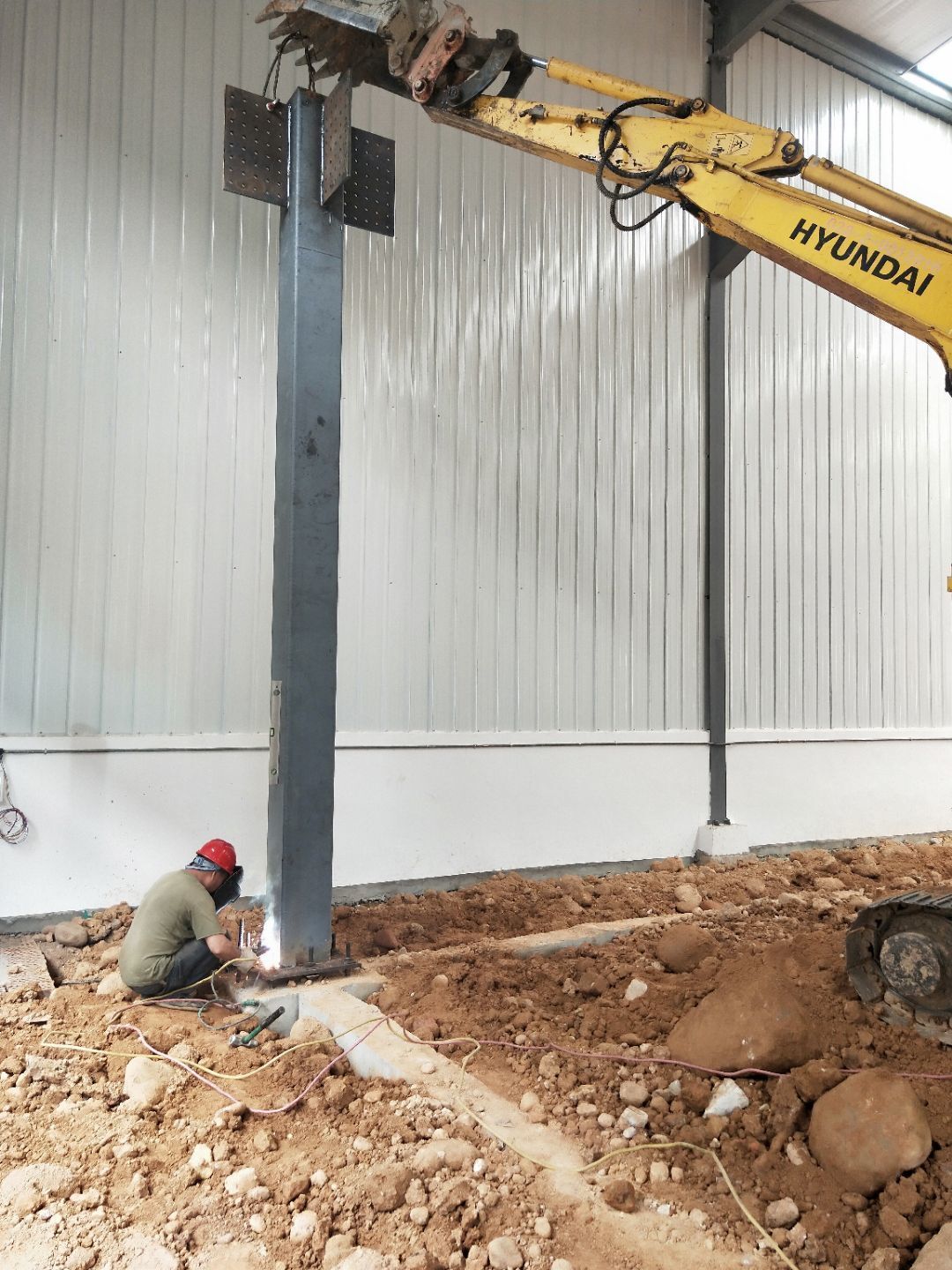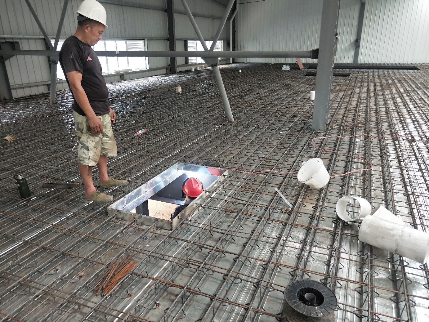 1、柱腳焊接加固 2、樓梯制作,樓板材料到場(chǎng)