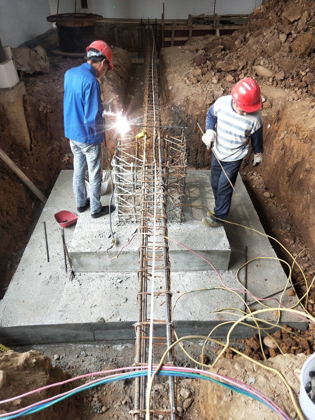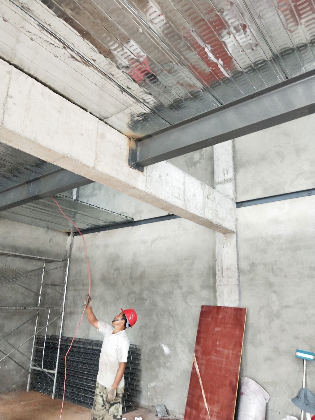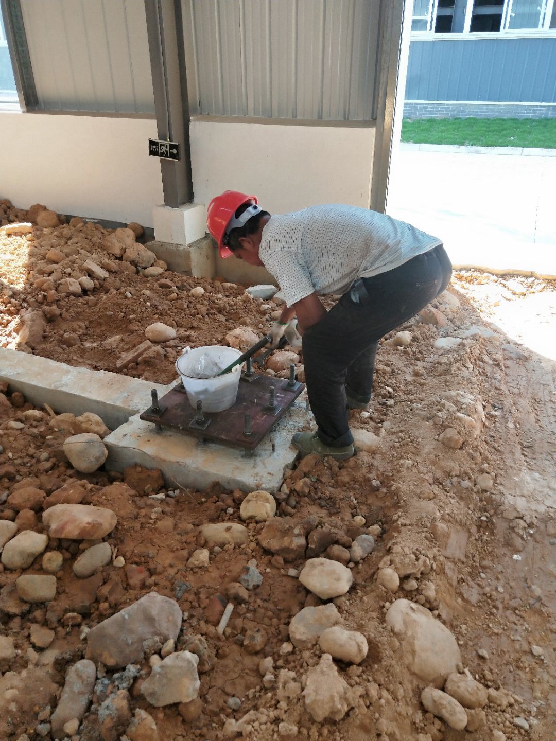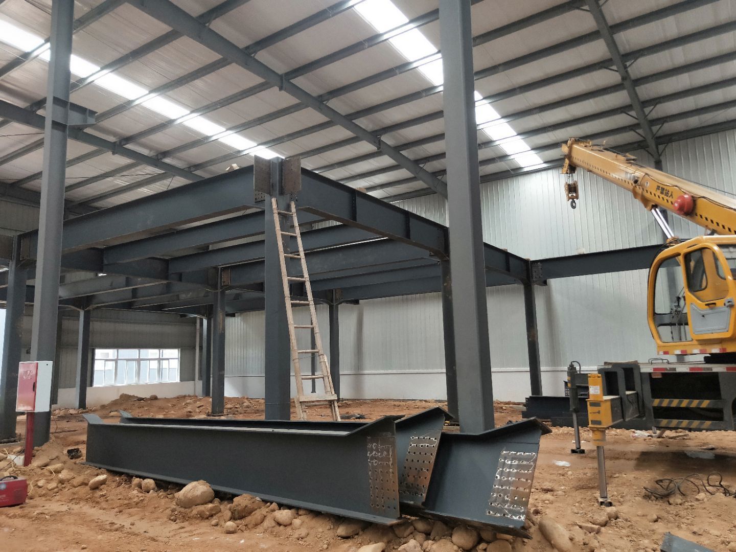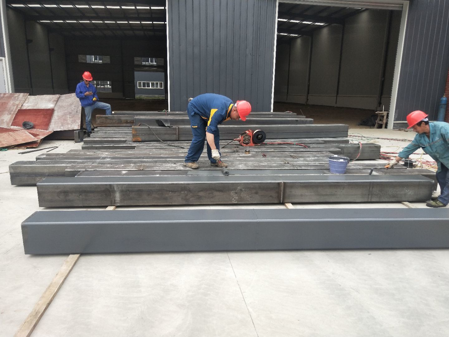 1、柱腳焊接加固 2、樓梯制作,樓板材料到場(chǎng)
