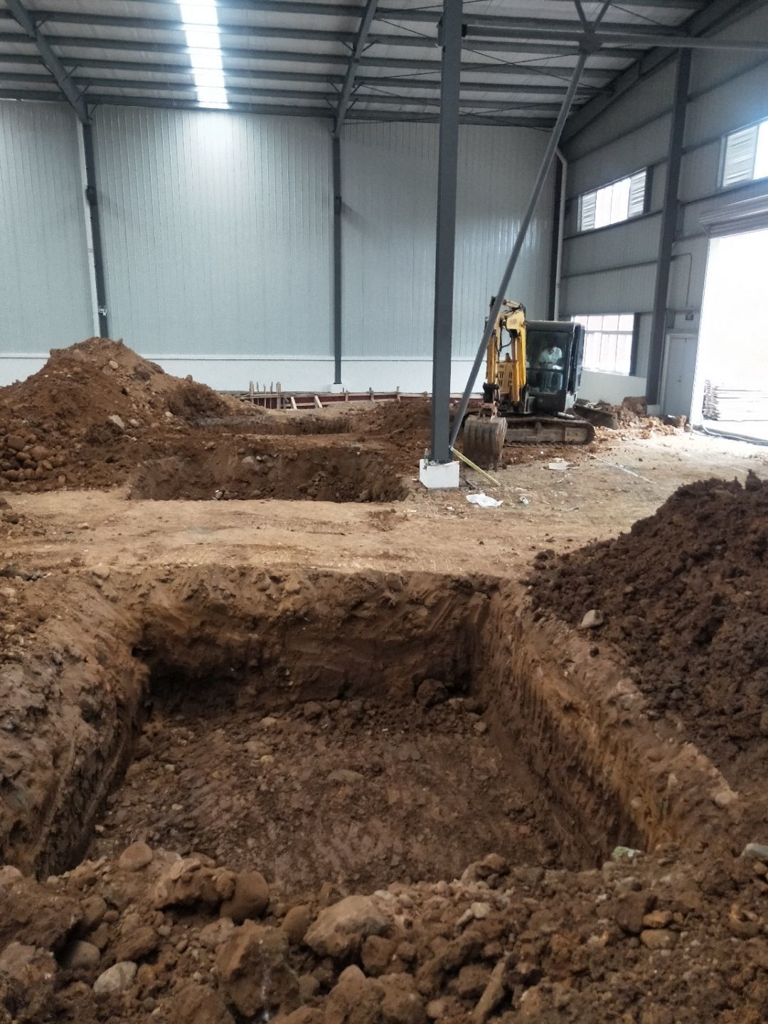 (1)二樓墻板完成70%, (2)二樓墻板,頂板上樓, (3)設(shè)備基礎(chǔ)完成90%, (4)卷簾門(mén)門(mén)口斜坡完成50%, (5)一樓衛(wèi)生間墻體墊層完成。