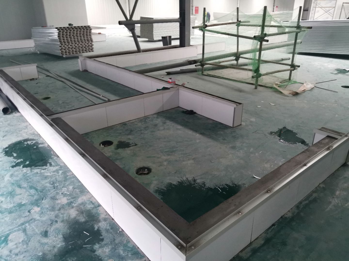 1,一樓預(yù)留墻板安裝完成, 2,場(chǎng)地清理基本完成, 3,一樓水電安裝完成50%, 4,主通道墻板等待設(shè)備進(jìn)場(chǎng)。