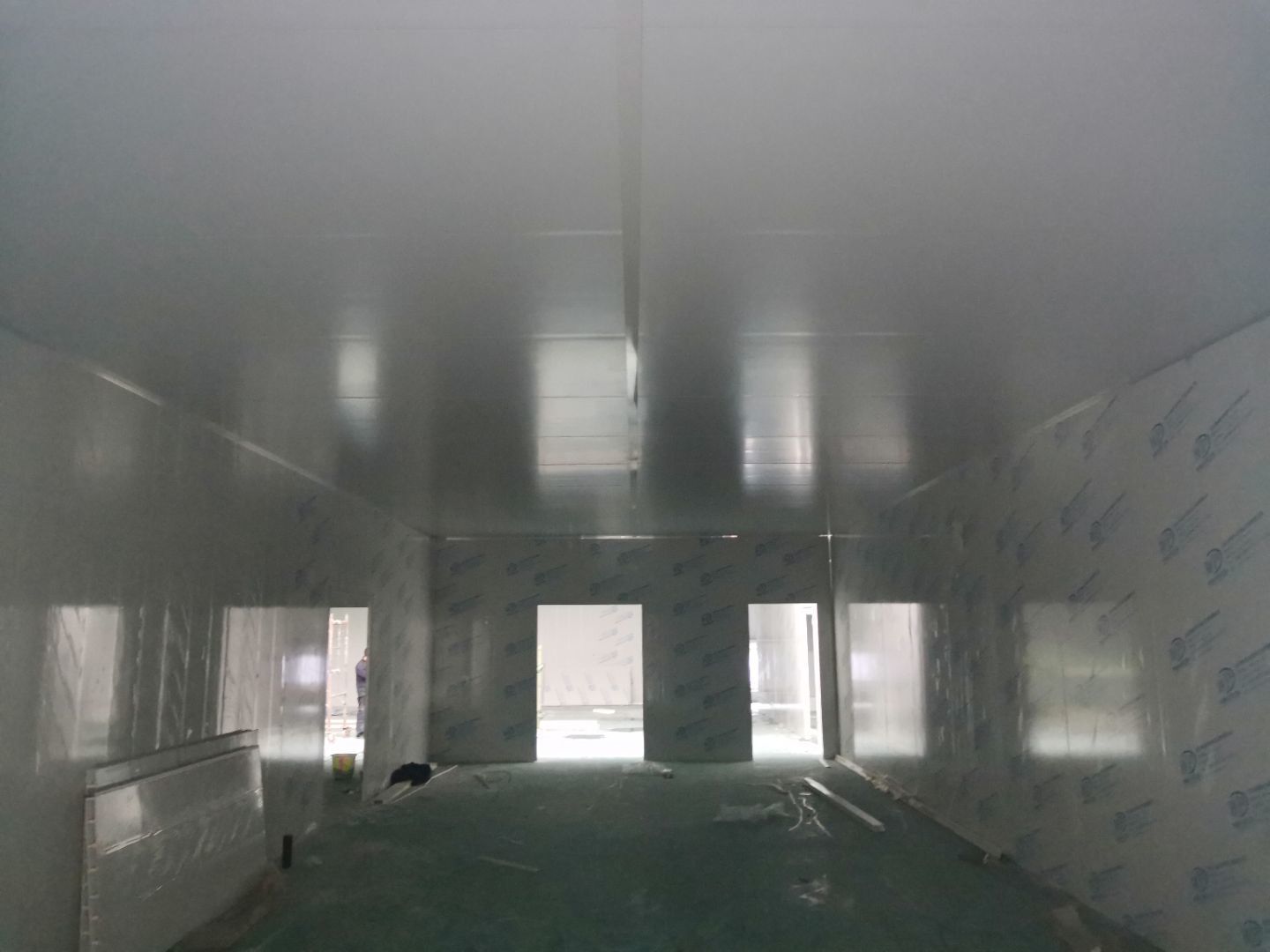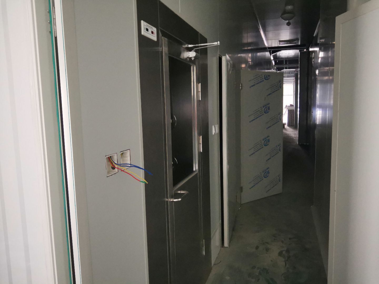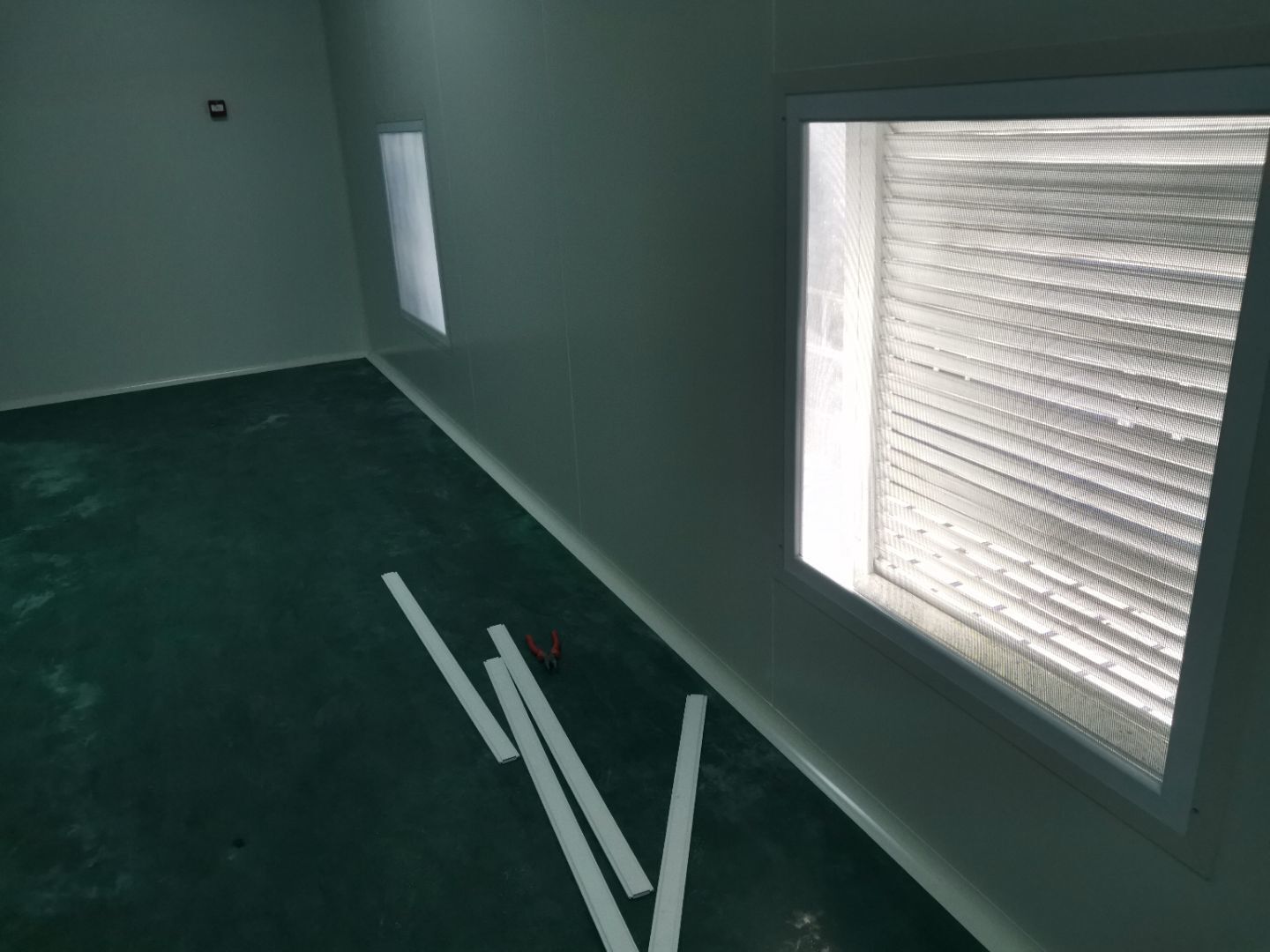 1,風(fēng)淋室,洗手槽進(jìn)場(chǎng)安裝完成 2,二樓彩鋼收尾完成95%, 3,二樓彩鋼門(mén)預(yù)制安裝完95%, 4,三防板二樓完成95%,, 5,二樓水電完成50% 6,一樓墻板完成40%,剩余等待設(shè)備進(jìn)場(chǎng)后安裝。