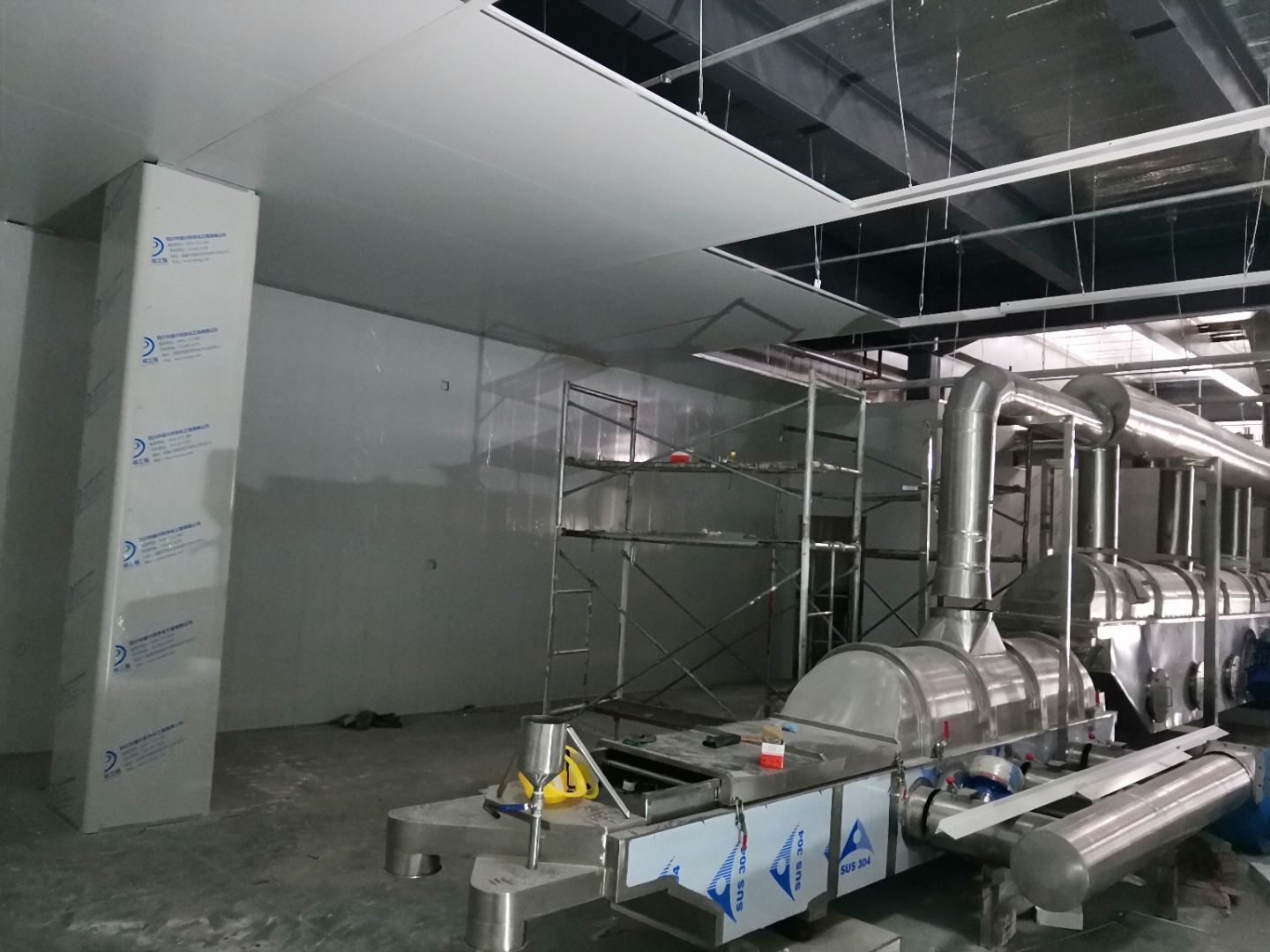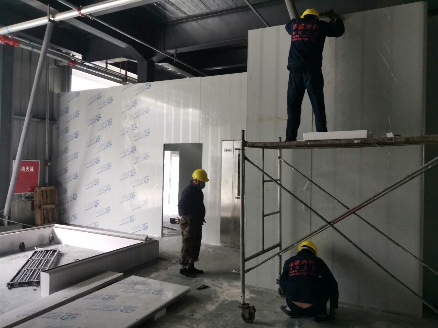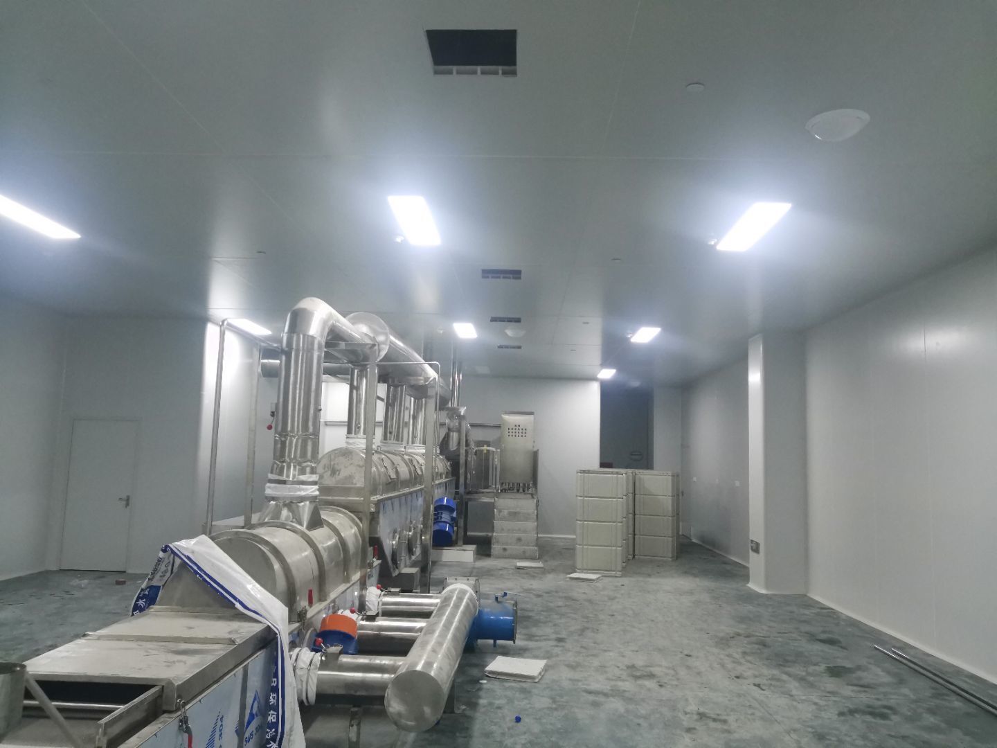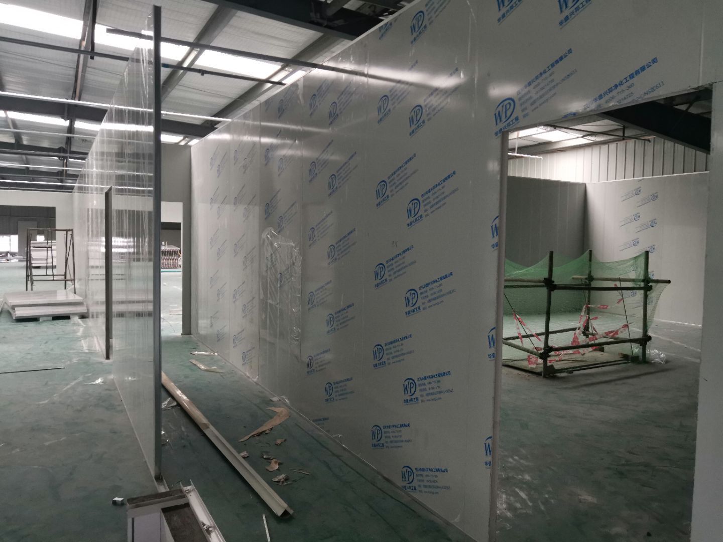 1,風(fēng)淋室,洗手槽進(jìn)場(chǎng)安裝完成 2,二樓彩鋼收尾完成95%, 3,二樓彩鋼門(mén)預(yù)制安裝完95%, 4,三防板二樓完成95%,, 5,二樓水電完成50% 6,一樓墻板完成40%,剩余等待設(shè)備進(jìn)場(chǎng)后安裝。