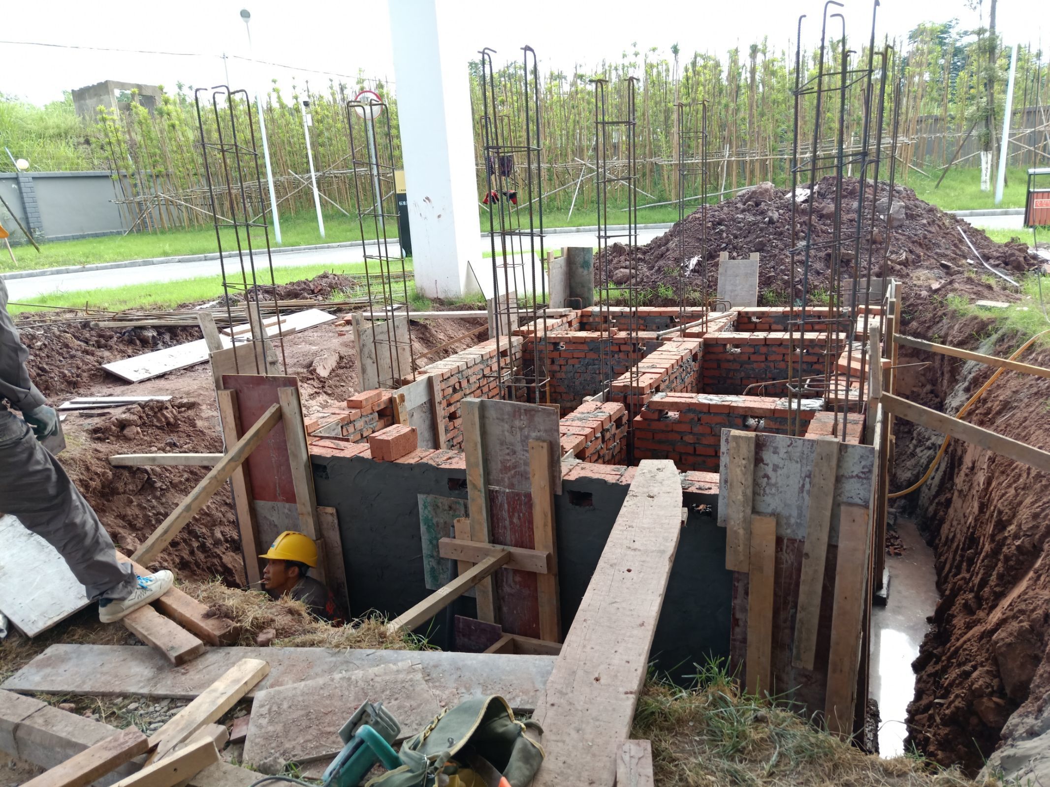 1.污水池回填施工 2.污水池二層平臺柱子關(guān)模施工 3.水電安裝 4.圓弧膠條施工 5.墻磚施工