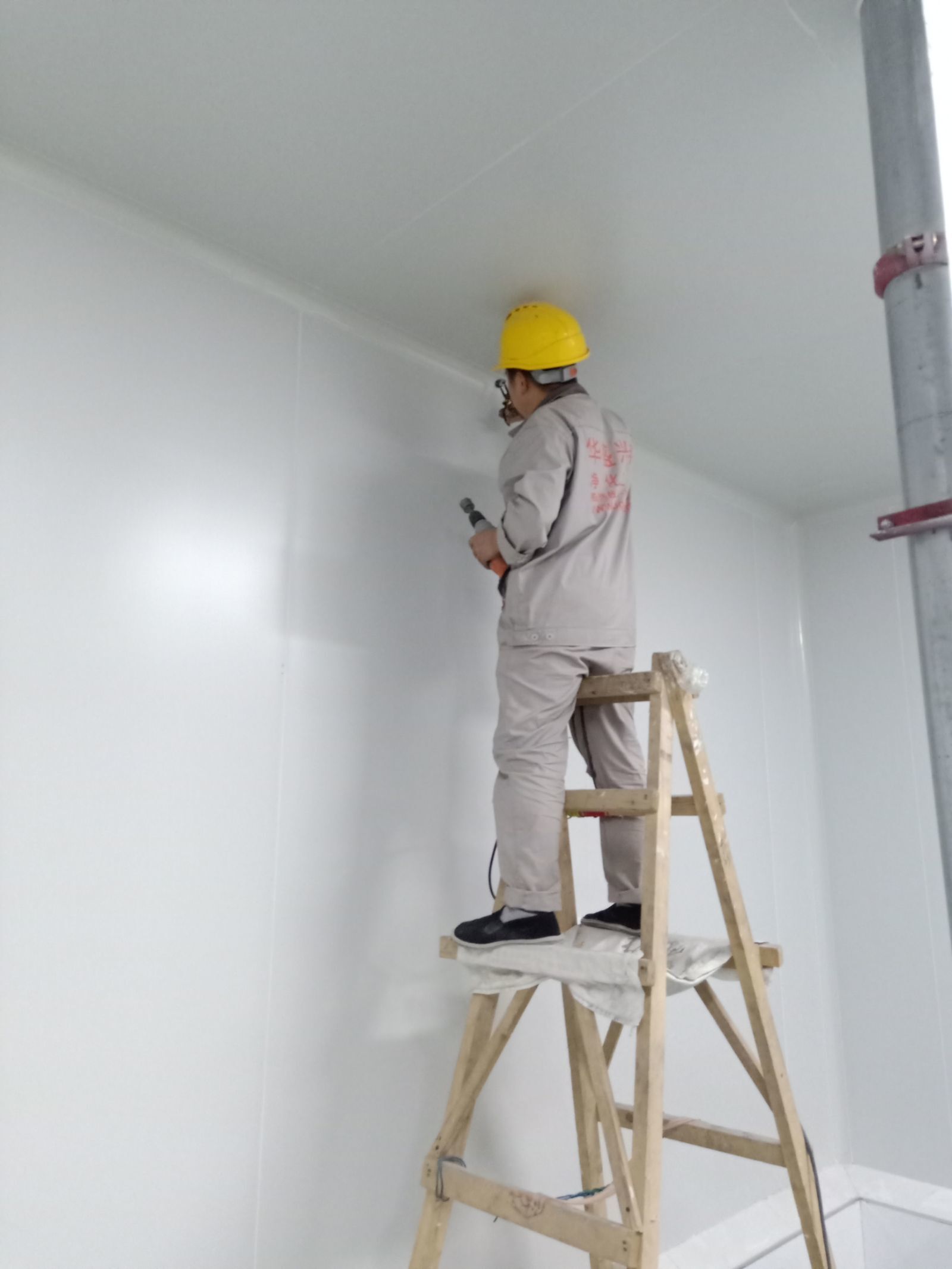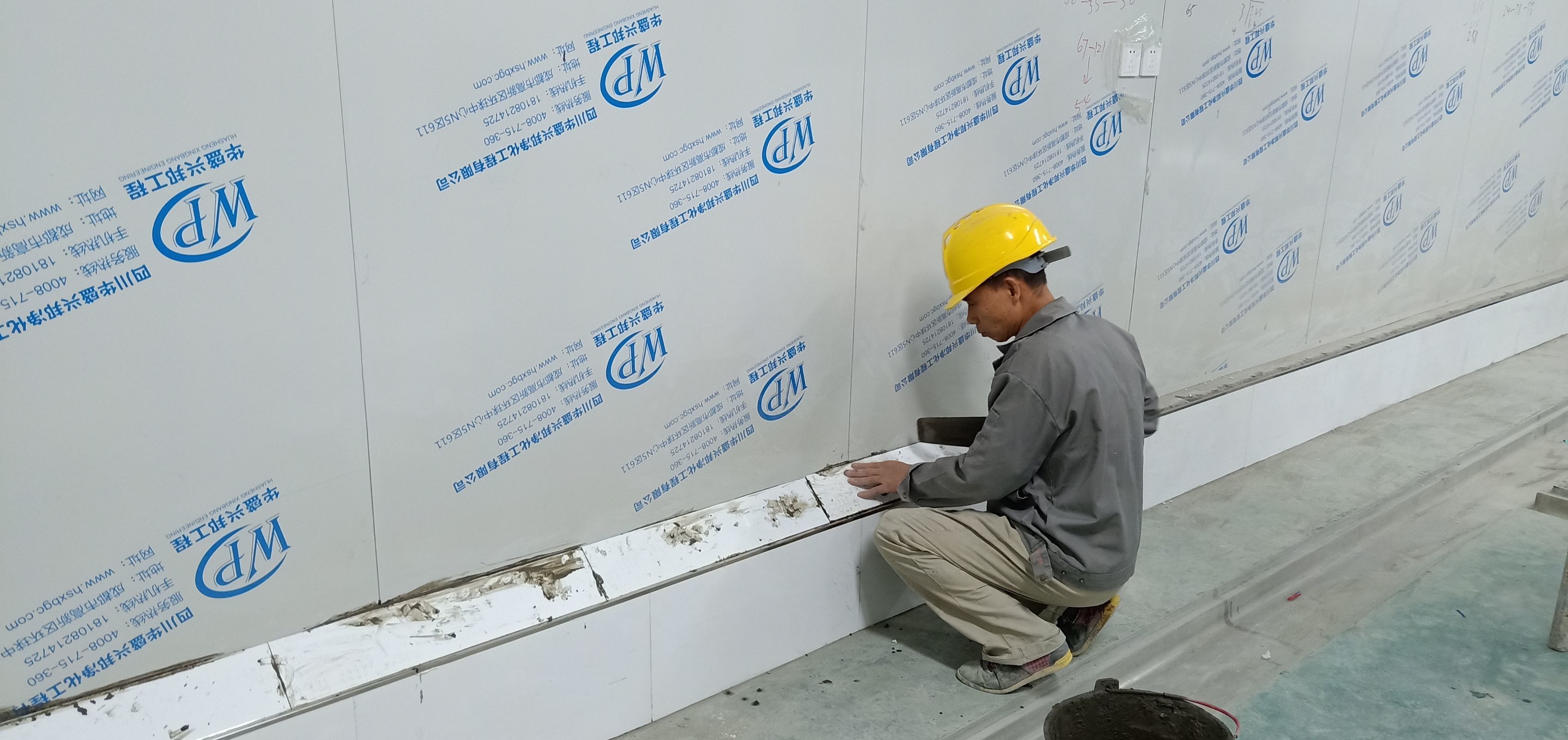 1.三防板吊頂材料到場。 2.彩鋼板吊頂材料到場,吊上樓。 3.彩鋼板吊頂完成百分之五。 4.線盒開孔完成百分之六十。 5.墻磚鋪貼完成百分之八五。 6.污水池砌磚完成百分之六十。