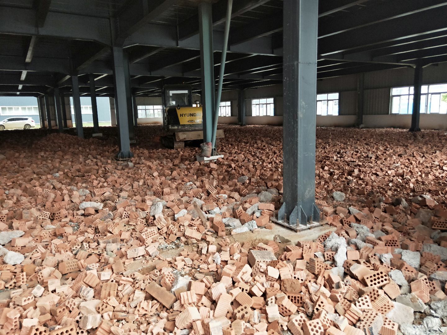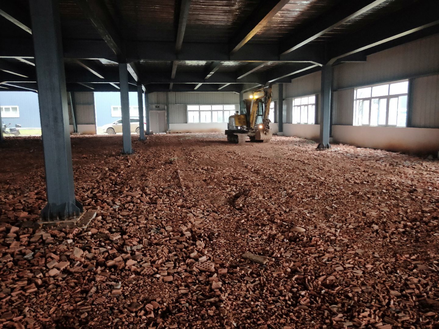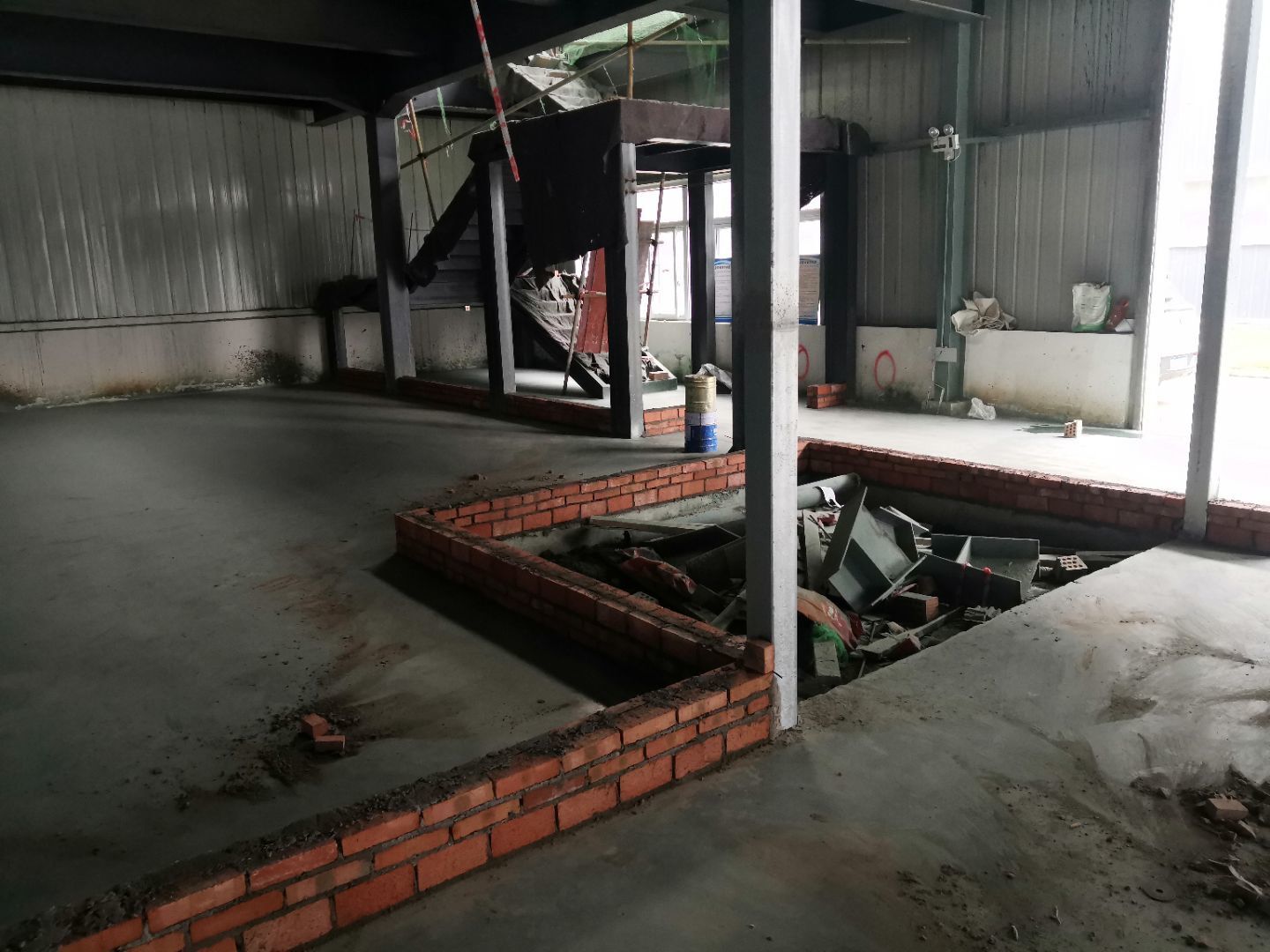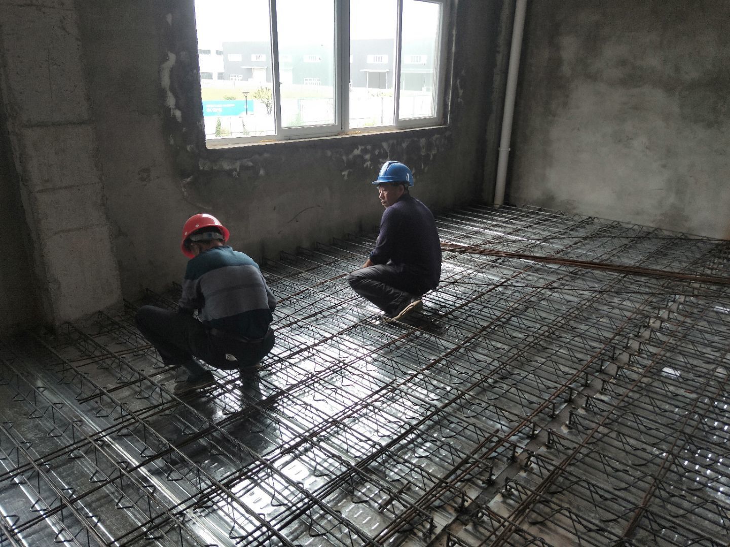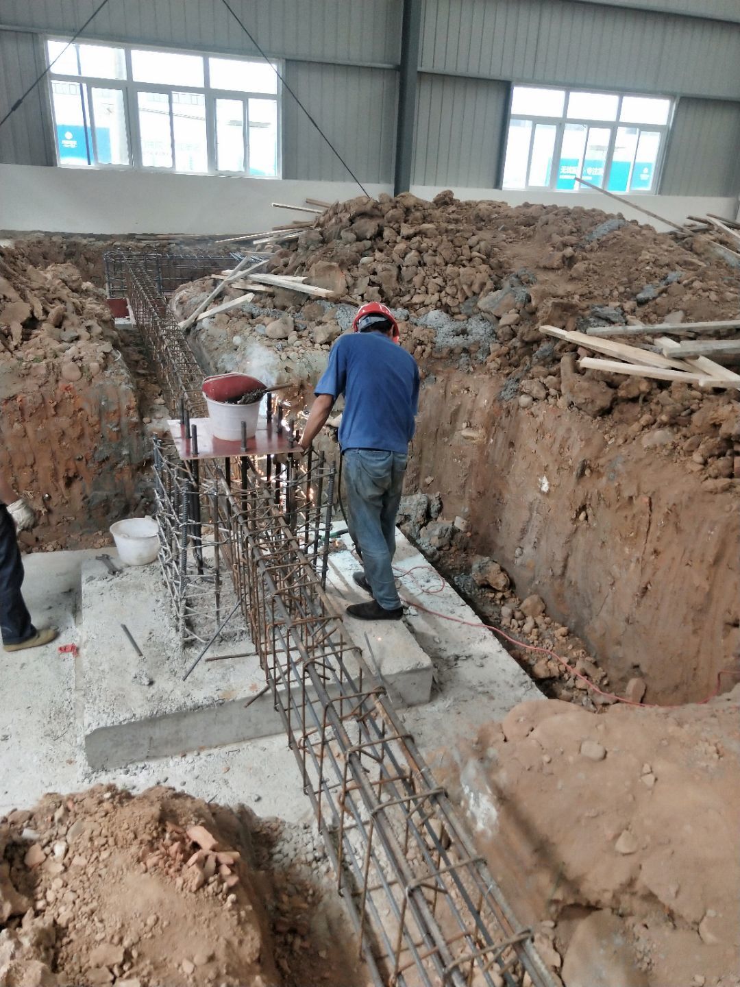 1、廠房回填建渣 2、辦公室樓承板綁扎鋼筋