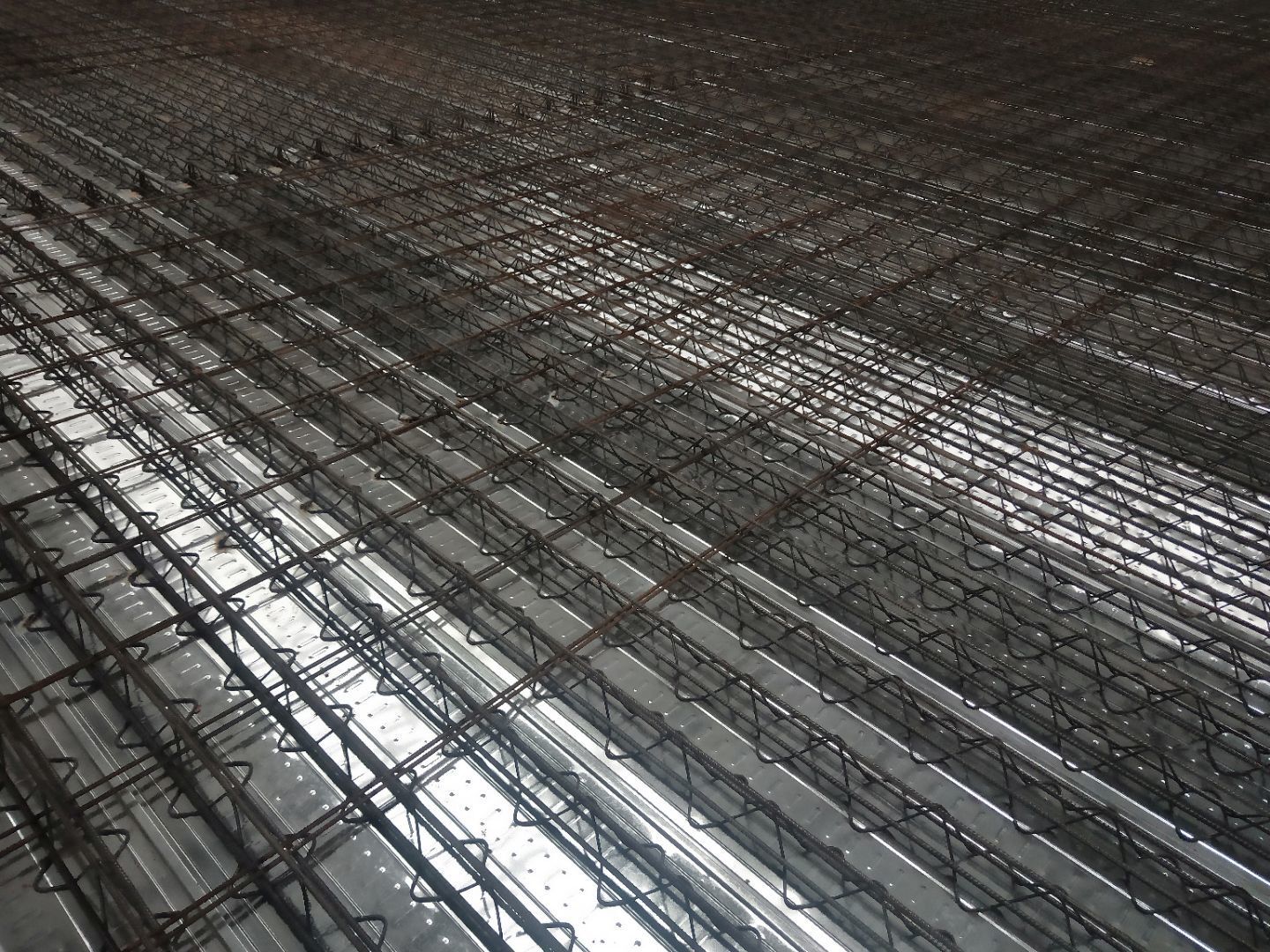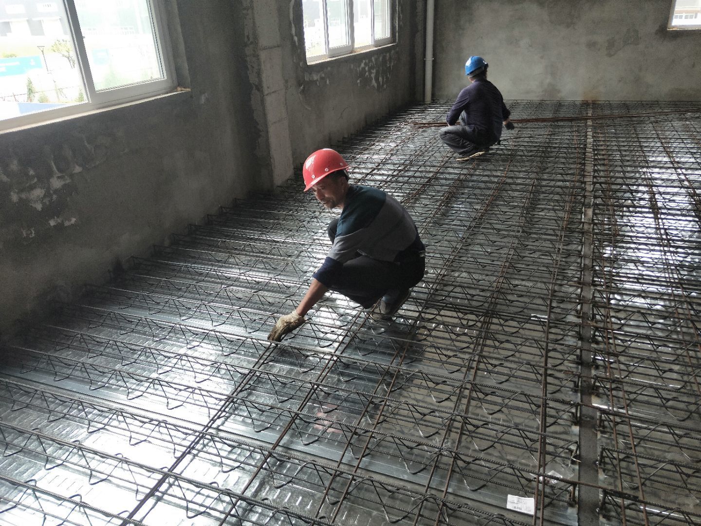 1、鋪設(shè)樓層板 2、綁扎鋼筋 3、樓梯焊接加固