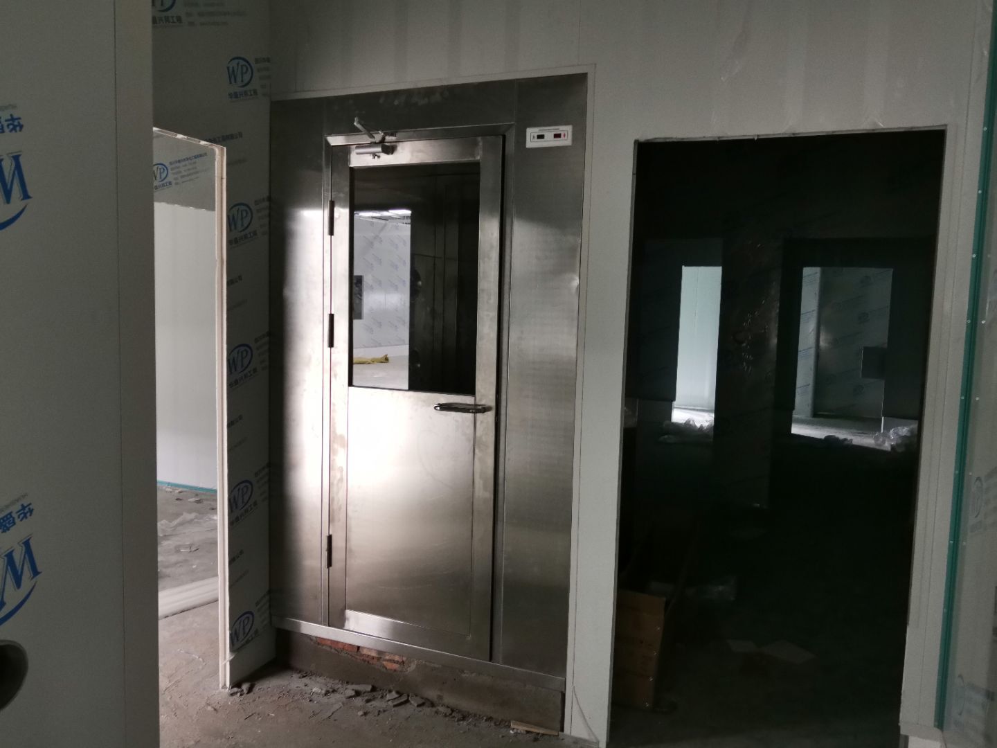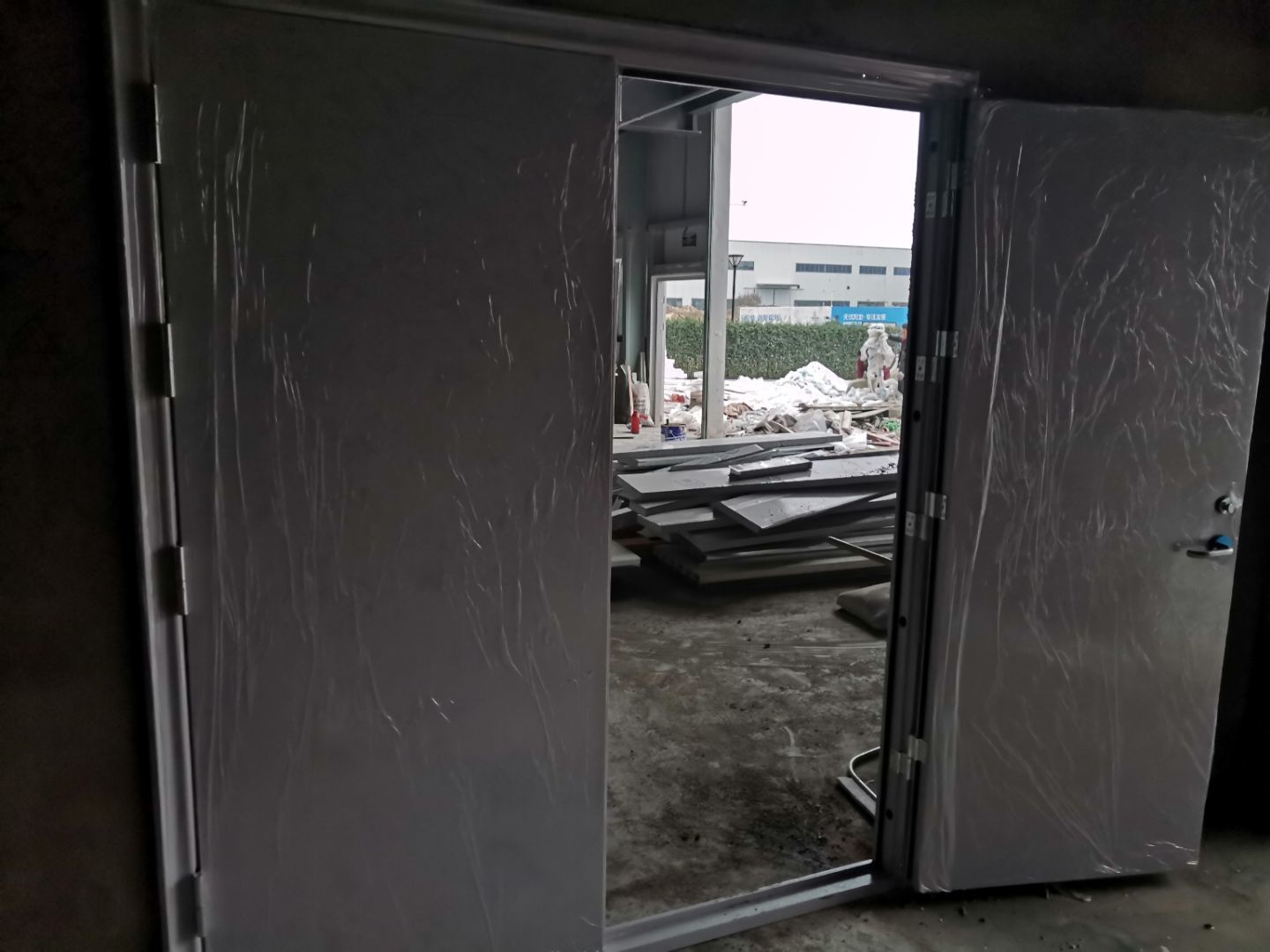 1,防火門安裝完成, 2,一樓彩鋼墻板完成90%,增項(xiàng)除外, 3,一樓衛(wèi)生間貼磚完成50%, 4,水電安裝完成70%。