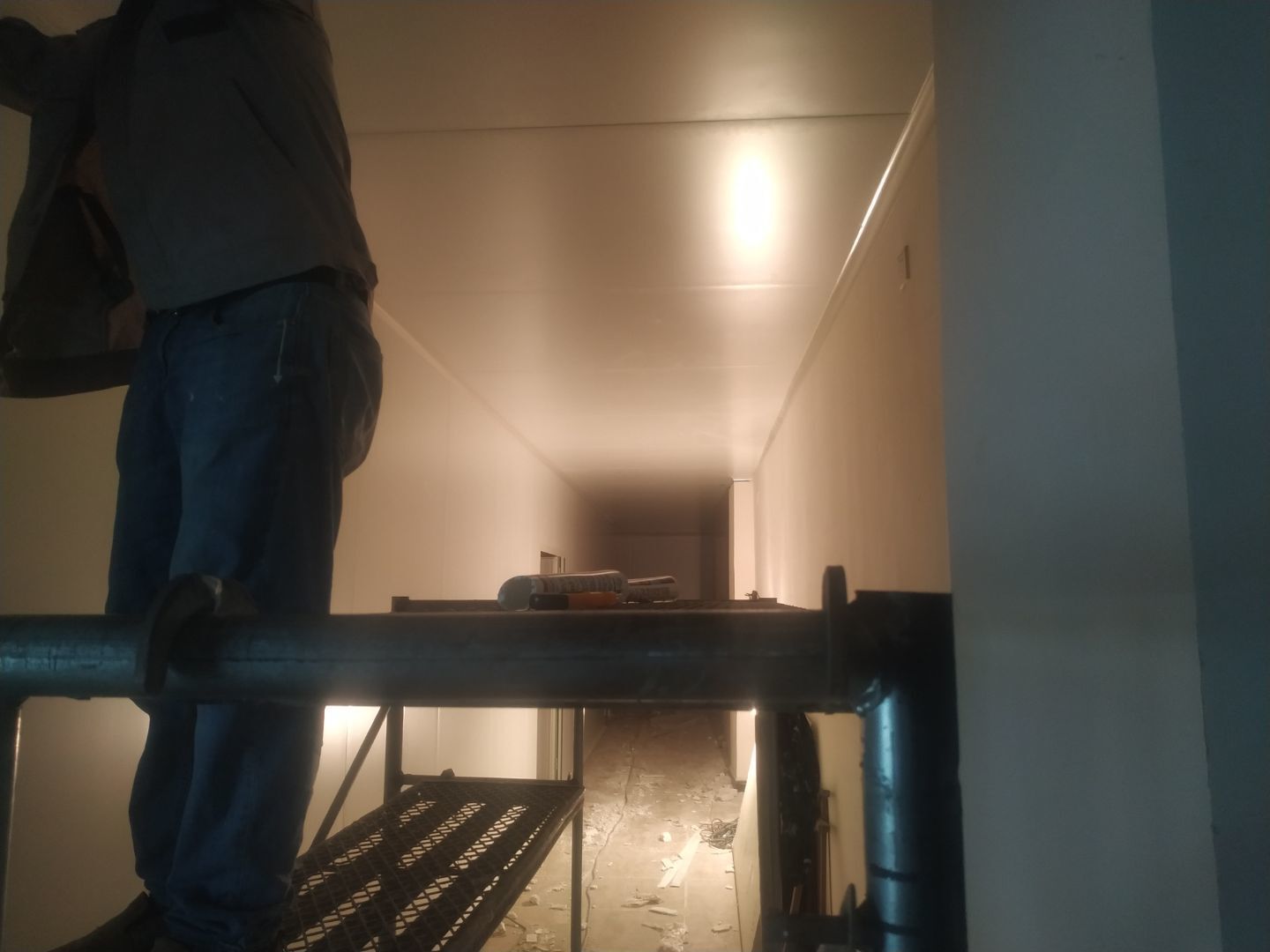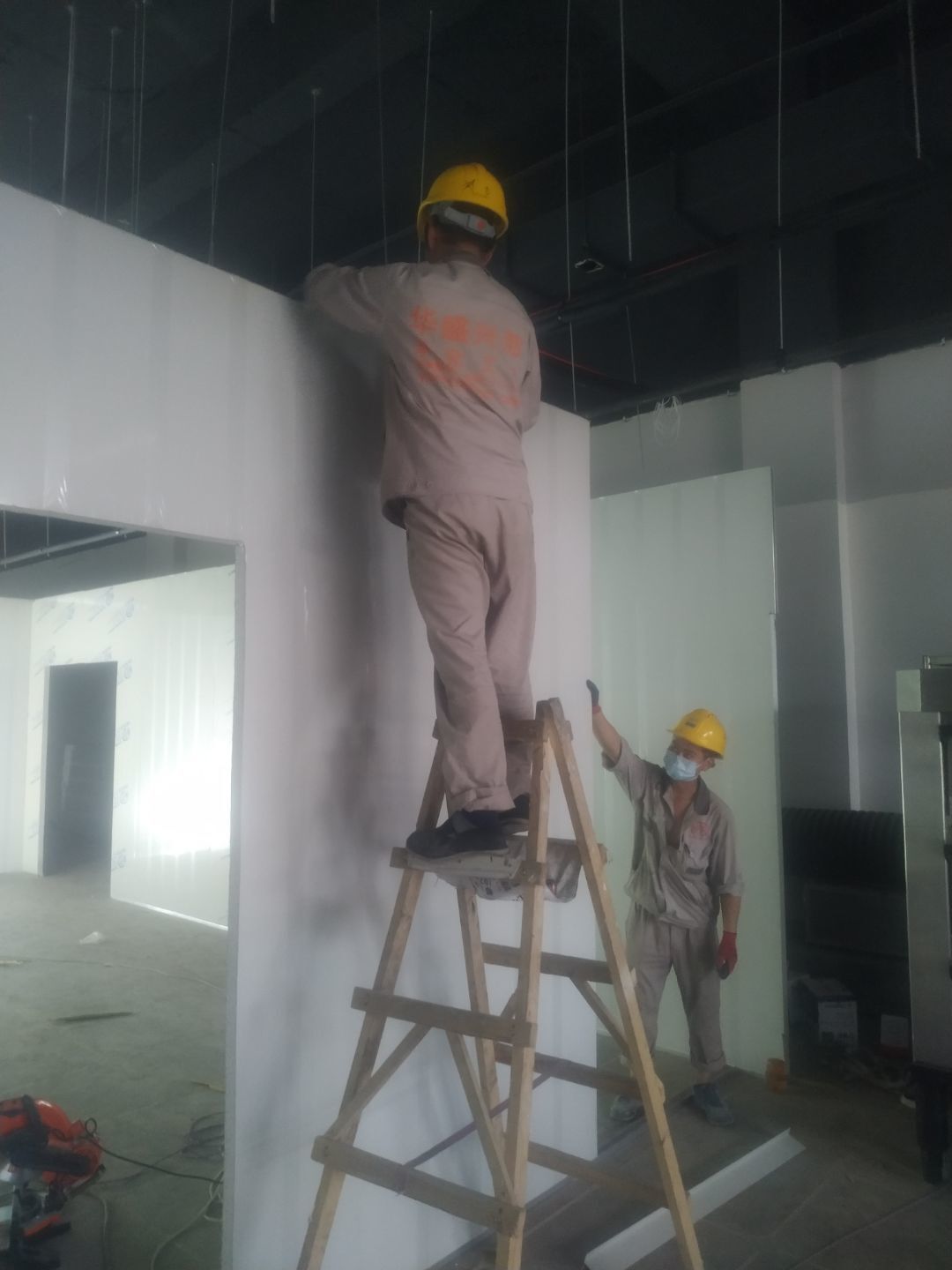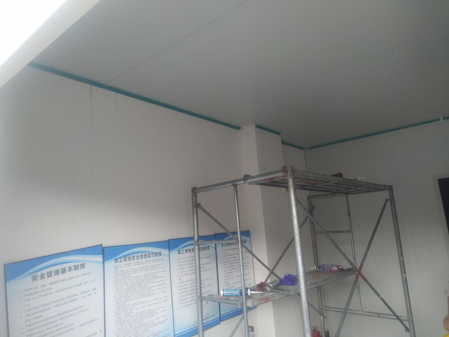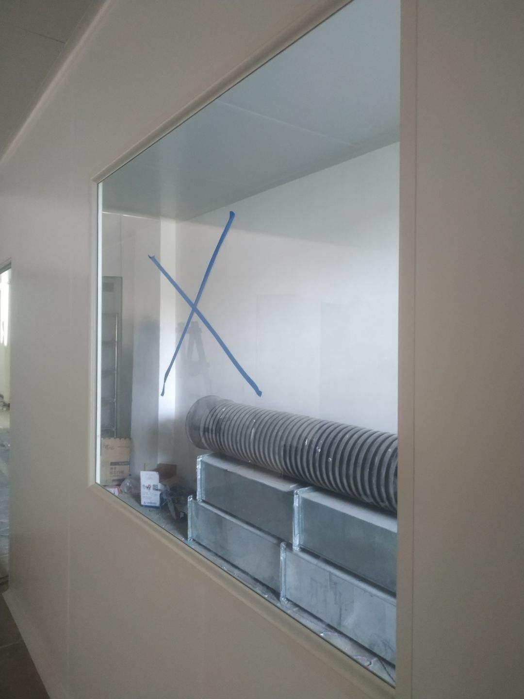 撕膜打膠完成95%,圓弧安裝完成90%,門安裝完成85%,觀察窗安裝完成,燈具安裝完成80%,配管穿線完成60%。