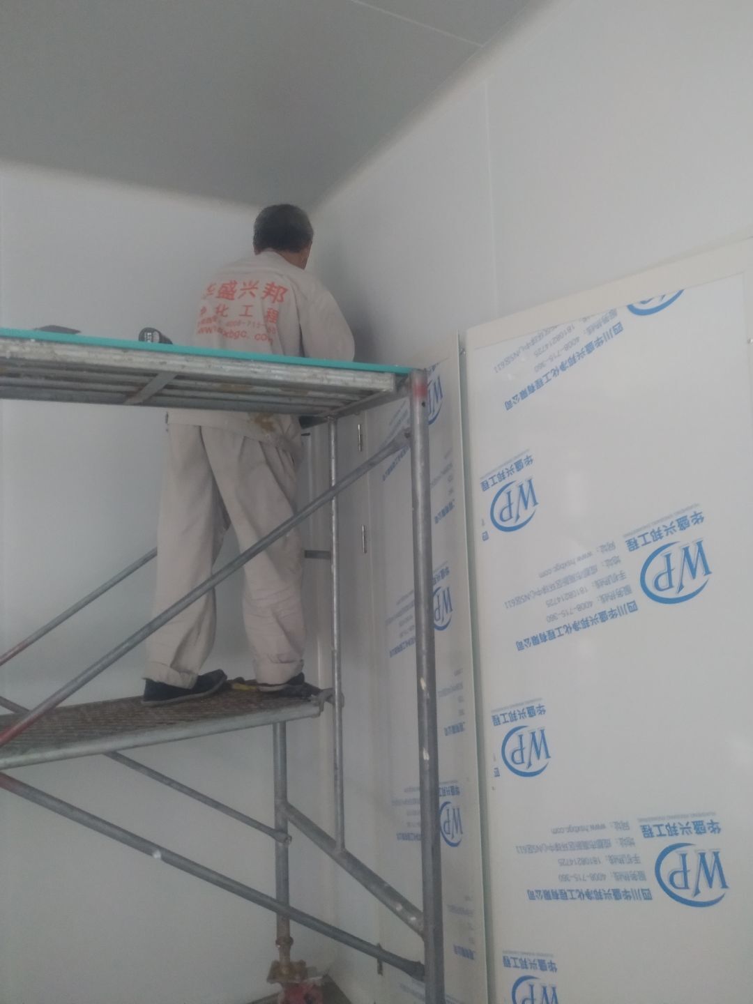 圓弧安裝完成90%,打膠完成85%,門鎖安裝完成75%,觀察窗開洞和玻璃安裝完成。