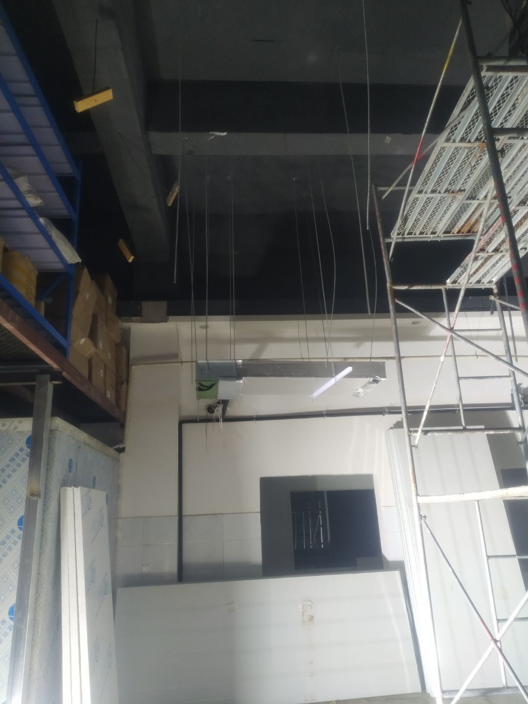 門安裝完成,門鎖安裝完成,換氣扇、進風口、空調風口開洞完成,照明電試電完成。