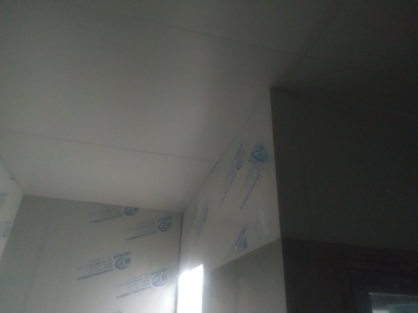 圓弧安裝完成,打膠完成,風口開洞完成,開關插座開孔完成80%,燈具安裝完成,現(xiàn)場衛(wèi)生清理完成,建渣處理完成。