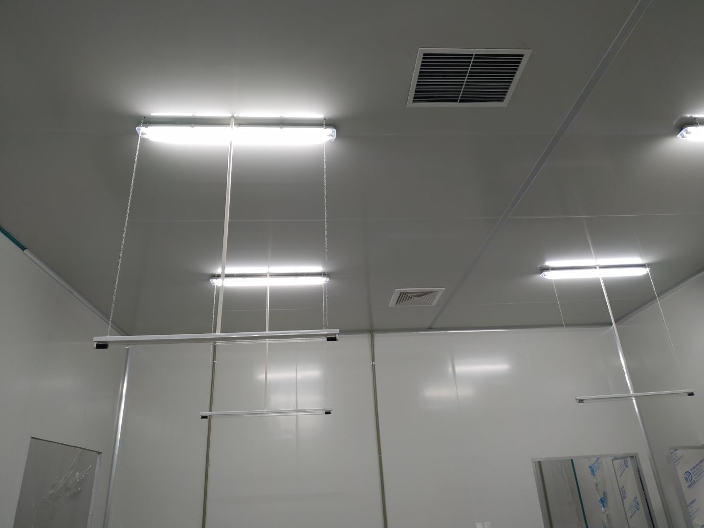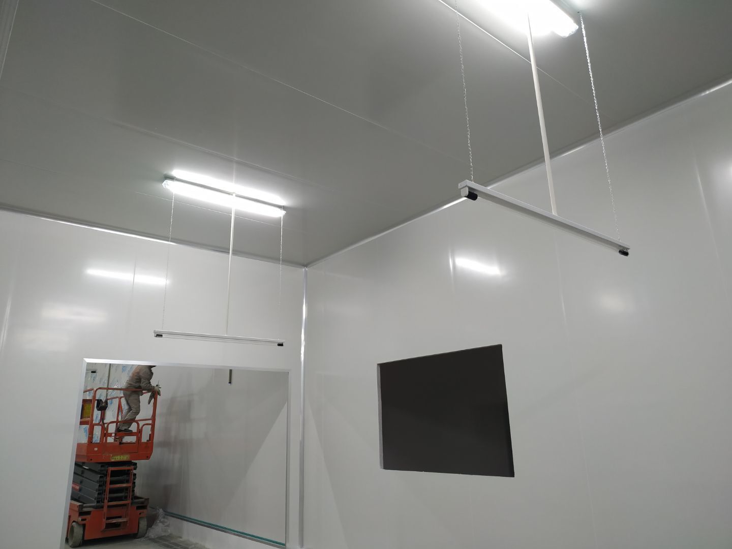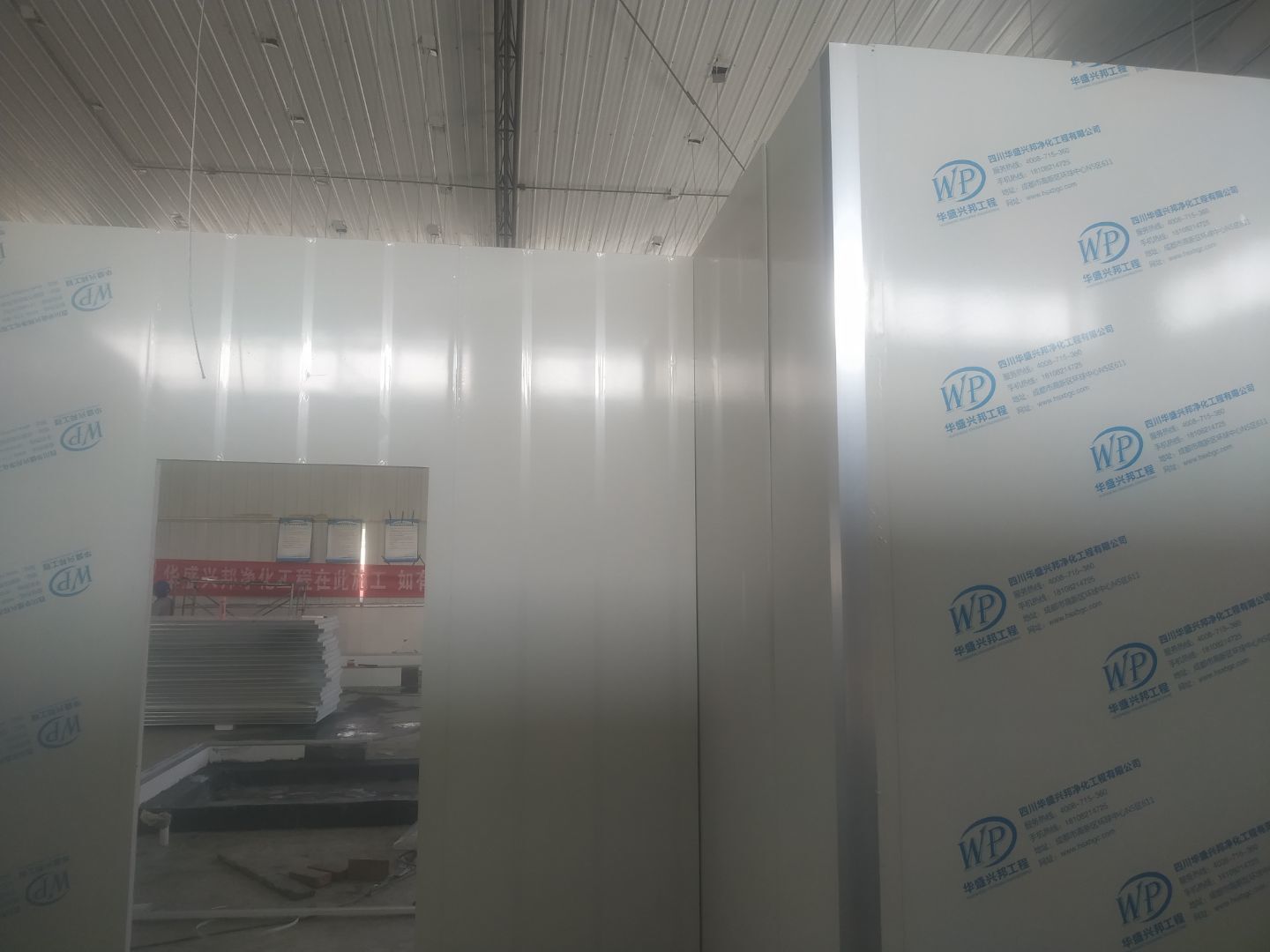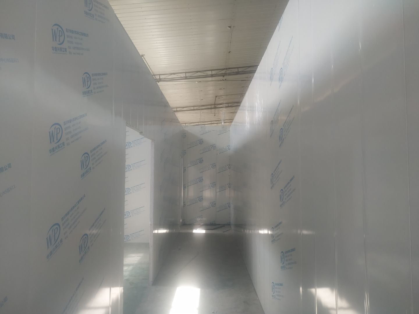 頂板安裝完成95%,新增排水溝安裝完成80%(剩余內(nèi)包材消毒殺菌和地磚同步安裝),燈具安裝完成80%,撕膜打膠完成45%,圓弧安裝35%。室外排水管安裝完成,三防板安裝完成。