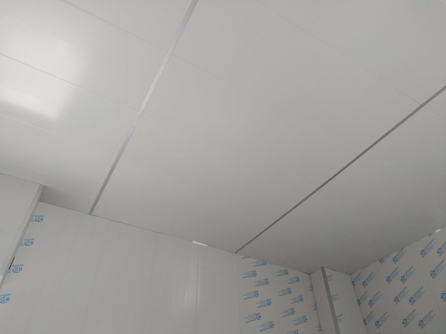 第三車彩板進場卸貨,墻板安裝完成90%,頂板安裝完成50%,燈具安裝完成25%,凍庫外機就位完成,銅管焊接完成。